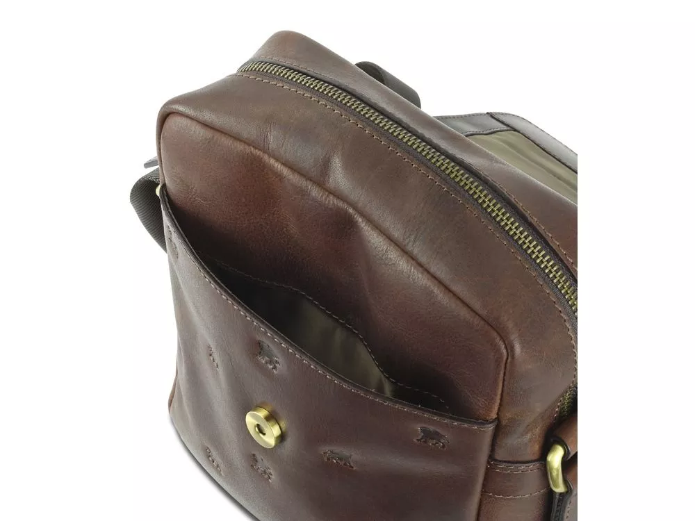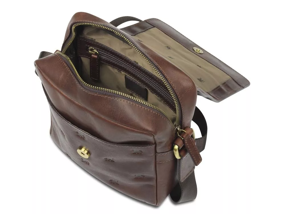 Коллекция DON LEON - квинтэссенция инноваций бренда MANO 1919®. Все изделия коллекции изготовлены вручную из высококачественной натуральной кожи буйвола в роскошном коричневом цвете. Элегантное тиснение в виде льва и изящный логотип подчеркивают индивидуальный стиль коллекции. MANO 1919 ®. Сумка через плечо M191920641 Удобство и комфорт: благодаря небольшим размерам сумка через плечо M191920641 идеально подойдет для повседневного использования. Практичная организация внутреннего пространства сумки обеспечивает идеальное хранение всех необходимых мелочей. Сумка через плечо - незаменимый и долговечный компаньон в повседневной жизни. Размеры: 25 см (В) x 20 см (Ш) x 8 см (Г) Материал: натуральная кожа буйвола Особенности: • Основное отделение на молнии закрывается на перекидной клапан с магнитной застежкой • Дополнительное отделение • Внутренний карман на молнии • Карман для мобильного телефона • Задний карман на молнии • Регулируемый плечевой ремень до 145 см • Первоклассная кожа, качественная подкладка и надежные застежки на кнопке и молнии гарантируют долговечность изделия