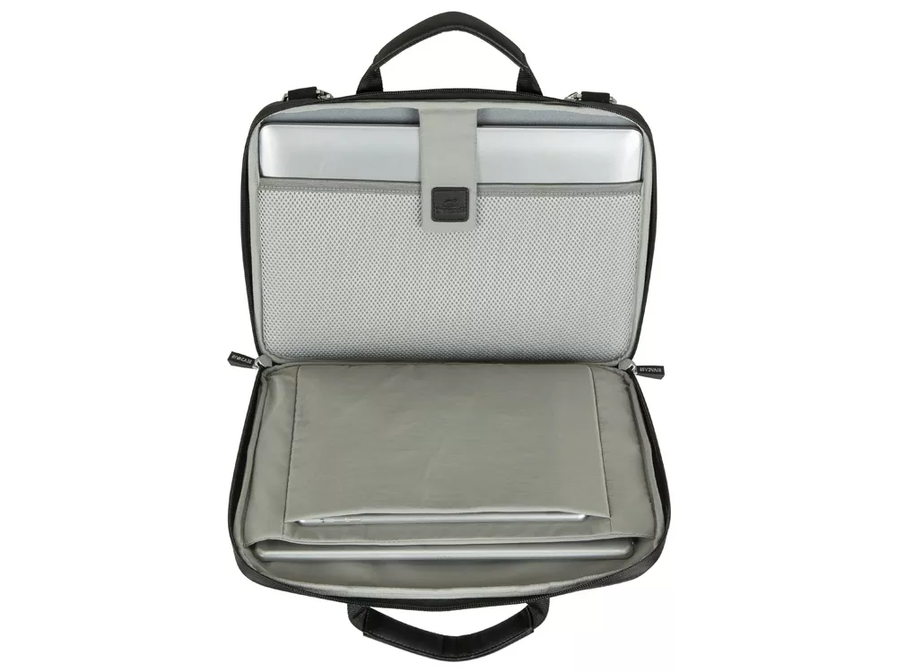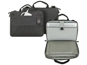 Сумка для ноутбуков до 13.3''. Описание: • Выполнен из высококачественной искусственной кожи и полиэстера, задняя панель из прочного материала EVA с использованием водостойкой молнии, все эти элементы обеспечивают превосходную защиту для MacBook/Ultrabook. • Внешний карман на молнии для аксессуаров, смартфона и документов. • Внутреннее пространство разделено на отделение для ноутбука, для документов (или Apple iPad Pro 12.9) и карман для 10.1 планшета. • Ручки для транспортировки сумки в руках. • Регулируемый, съемный плечевой ремень с мягкой накладкой. Совместимость: Планшеты и ноутбуки до 12.9-13.3, включая Apple iPad Pro 12.9 / MacBook Air / Pro 13. Внутренний размер: 332 x 240 x 21 мм.