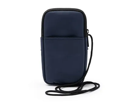 Сумка для мобильного телефона из искусственной кожи. Основное отделение закрывается на молнию. Внешний карман и регулируемый ремешок для переноски.