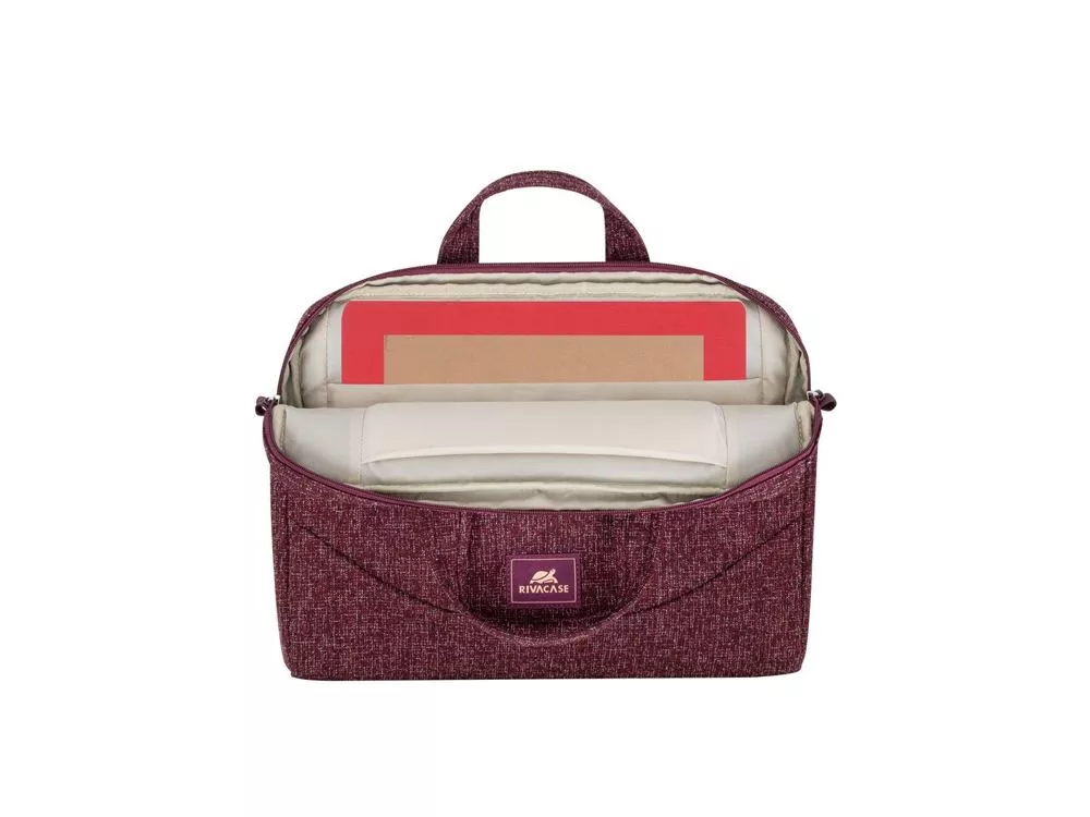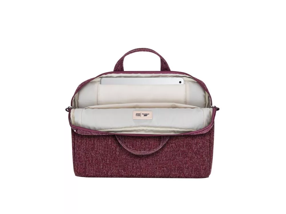 RIVACASE Сумка для ноутбуков до 14. Описание: • Стильная сумка из высококачественной, водоотталкивающей ткани. • Легкая, но имеет утолщенные стенки для защиты ноутбука от случайных ударов и царапин, а также от пыли и влаги. • Основное отделение для ноутбука 13.3-14 имеет также два внутренних отделения - для планшета до 10.5 и документов. • Два внешних отделения на молнии для хранения аксессуаров, визитных карт, смартфона. • Двойная застежка молния для удобного доступа к устройству. • Удобные ручки для переноски и наплечный ремень помогут чувствовать себя комфортно в самом долгом путешествии. • Внутренний размер 35,5 х 25,5 х 3,5 см. Термотрансфер (1 цвет (цветные изделия)) на данный товар осуществляется бесплатно. Оплачивается только настройка оборудования в размере 5400 рублей на весь тираж.