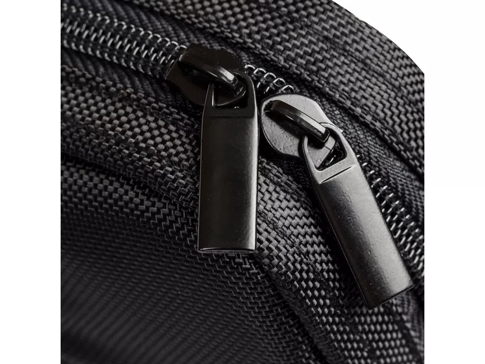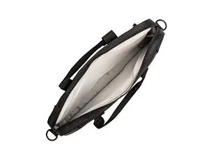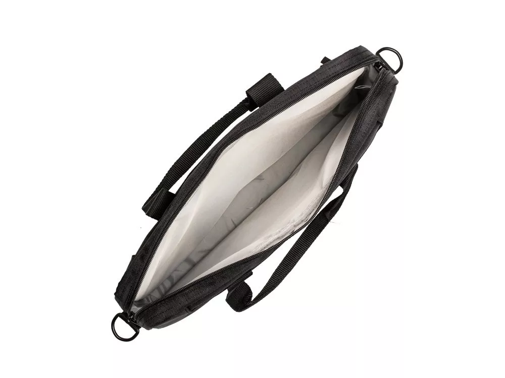 Сумка для ноутбука до 15.6''. • Сумка выполнена из плотного материала для лучшей защиты ноутбука от случайных механических повреждений. • Помимо основного отсека, сумка оснащена тремя дополнительными карманами, в которых без труда разместятся документы, аксессуары и другие небольшие гаджеты. • Двойная молния для удобного доступа к ноутбуку. • Ручки убираются во внешние отделения с двух сторон, что придает сумке более компактный вид. • Регулируемый съемный плечевой ремень.