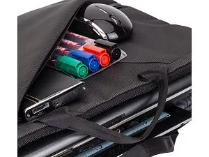 Сумка для ноутбука до 15.6''. • Стильная, ультратонкая сумка для ноутбуков до 15.6. • Сумка выполнена из плотного синтетического материала и имеет утолщенные стенки для лучшей защиты ноутбука от случайных ударов и царапин, а также от пыли и влаги. • Два дополнительных внутренних отделения помогут удобно разместить все необходимые аксессуары, планшет до 10.1 и документы. • Переднее отделение для смартфона и аксессуаров для ноутбука. • Двойная застежка молния для удобного доступа к устройству. • Ручки для транспортировки. • Регулируемый съемный плечевой ремень.