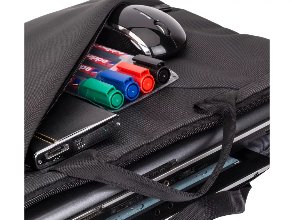 Сумка для ноутбука до 15.6''. • Стильная, ультратонкая сумка для ноутбуков до 15.6. • Сумка выполнена из плотного синтетического материала и имеет утолщенные стенки для лучшей защиты ноутбука от случайных ударов и царапин, а также от пыли и влаги. • Два дополнительных внутренних отделения помогут удобно разместить все необходимые аксессуары, планшет до 10.1 и документы. • Переднее отделение для смартфона и аксессуаров для ноутбука. • Двойная застежка молния для удобного доступа к устройству. • Ручки для транспортировки. • Регулируемый съемный плечевой ремень.