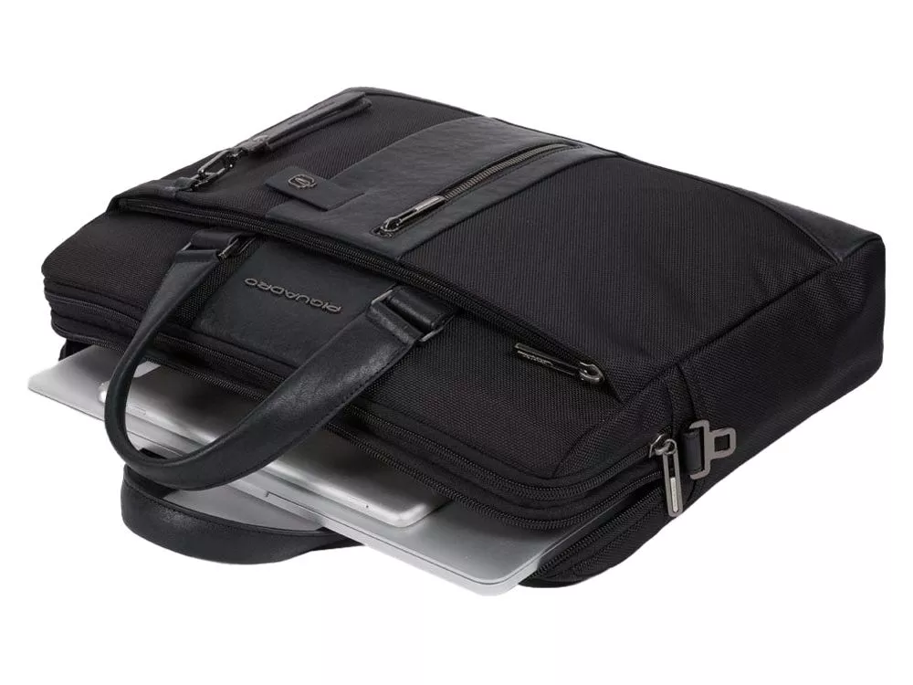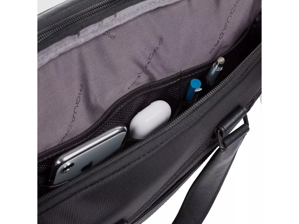 Сумка с отделениями для ноутбука, iPad® и радиочастотной защитой - мягкое отделение для ноутбука 15,6 - отделение для iPad® 10,2'', iPad® Air 10,9'', iPad®Pro 11'' - внутренний карман для мобильного телефона - карман для AirPods® - карман для мелких предметов - отстегиваемая адресная бирка - петля для ручки - ремень для крепления на ручке чемодана