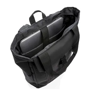 Эту универсальную сумку можно носить как за ручки, так и на плече или на спине в качестве рюкзака. В ней предусмотрено мягкое отделение для ноутбука размером 15" и карманы с защитой RFID. Материал изделия не содержит ПВХ.