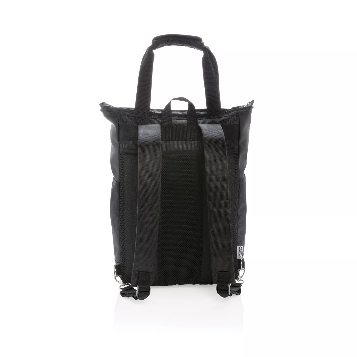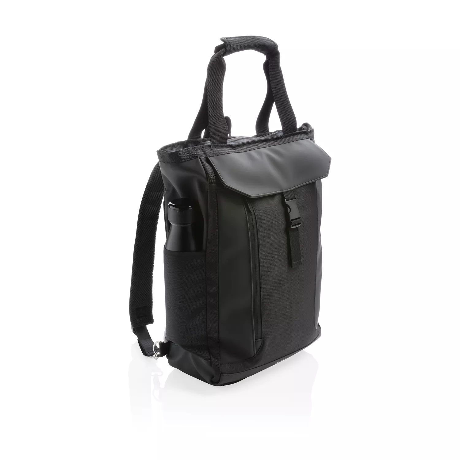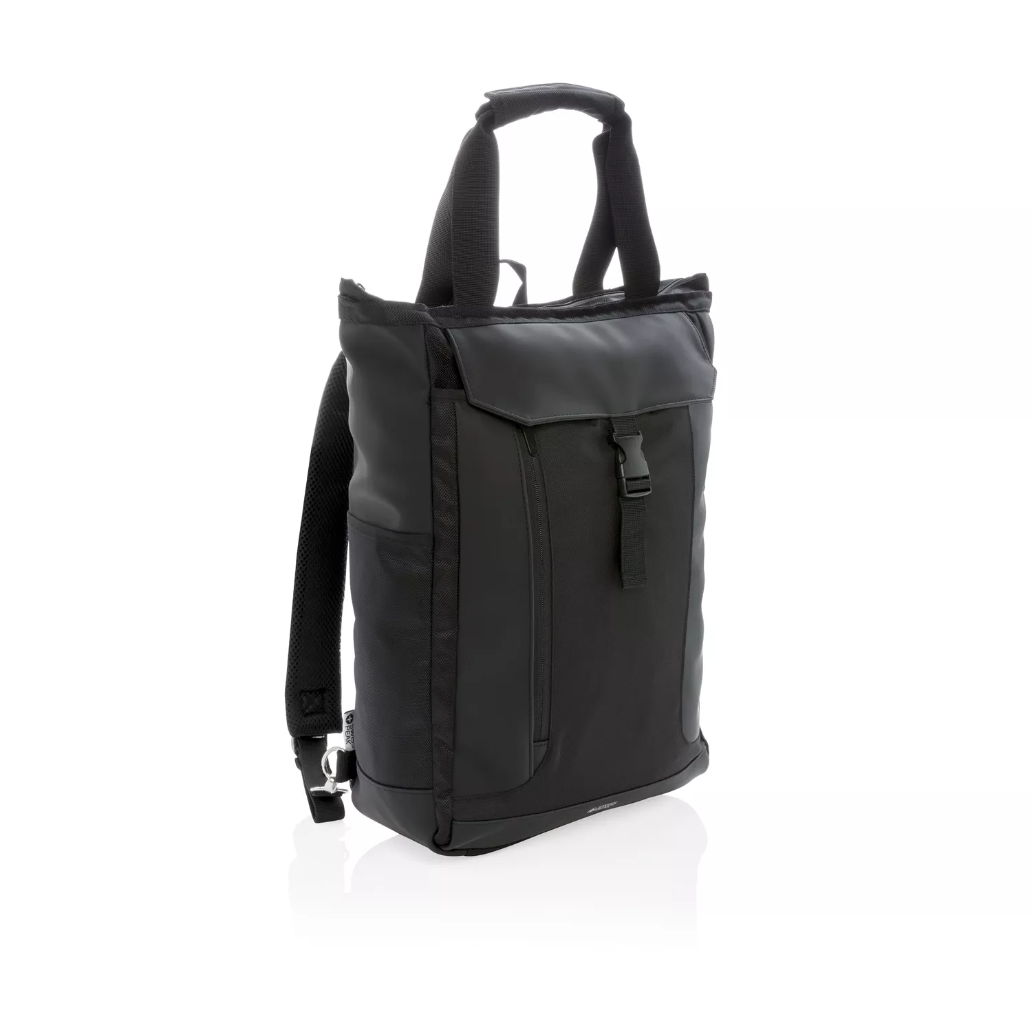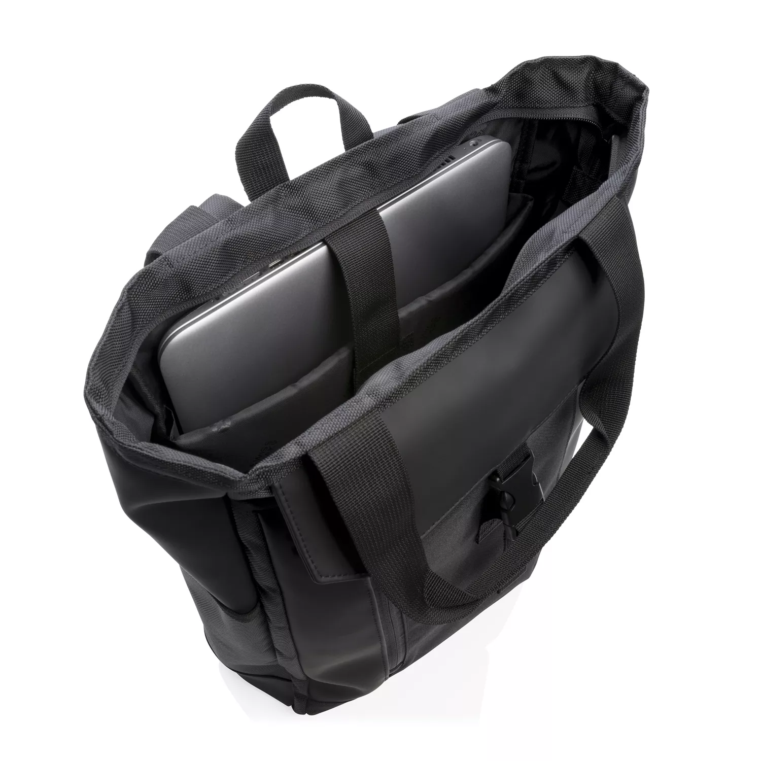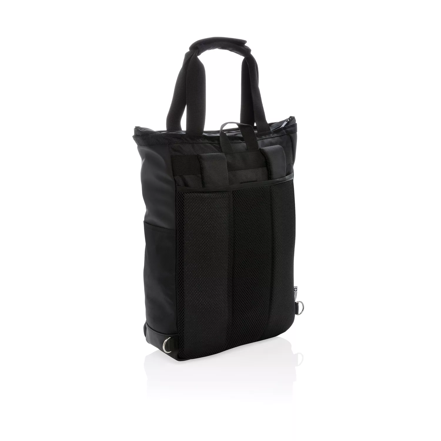 Эту универсальную сумку можно носить как за ручки, так и на плече или на спине в качестве рюкзака. В ней предусмотрено мягкое отделение для ноутбука размером 15" и карманы с защитой RFID. Материал изделия не содержит ПВХ.