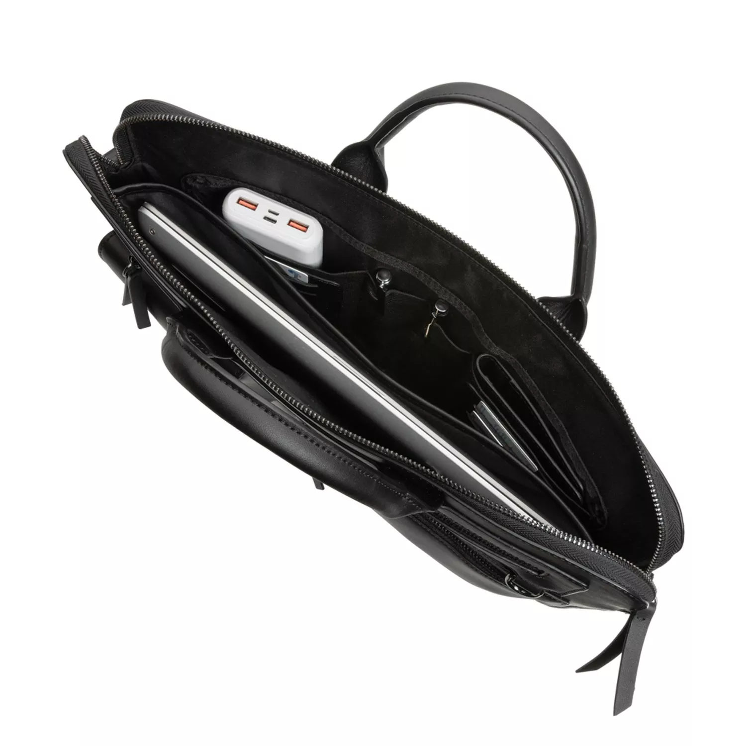 Стильная, экологичная, вместительная — сумка для ноутбука 14’’ от Swiss Peak отвечает всем современным требованиям. И сама сумка, и ее фурнитура выполнены в насыщенном черном цвете. Внутри два отделения: одно — для ноутбука диагональю до 14’’, второе — для аксессуаров, канцелярских принадлежностей и других нужных мелочей. Снаружи на сумке также есть несколько карманов: один, большой, на задней стенке и три поменьше — на передней. Они подойдут для хранения кошелька, телефона и других вещей, которые всегда должны быть под рукой. Обратите внимание на толщину своего ноутбука: к примеру, тонкий MacBook без труда поместится в сумку. А габаритный и объемный MSI с диагональю 14'' оказался для нее слишком большим. Не содержит ПВХ. Содержание переработанных материалов составляет 61% от общего веса изделия. Сертифицировано GRS. Эта сертификация полностью контролирует путь поставок переработанных материалов и гарантирует их наличие в изделии.