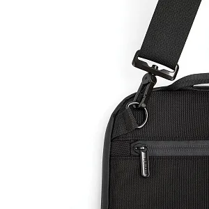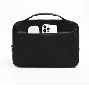 Сумка для ноутбука от XD Design станет надежным спутником, куда бы вы ни отправились. Это настоящее воплощение стиля и функциональности. Она изготовлена из переработанных пластиковых бутылок с водоотталкивающим покрытием, поэтому вашей технике не страшны ни дождь, ни снег. Внутри — мягкая подкладка из приятного на ощупь флиса, которая гарантирует безопасность ноутбуку. Несмотря на компактные размеры, в сумку поместятся зарядные устройства, мышь и необходимые в поездке вещи. На задней стороне есть дополнительный карман, а удобный плечевой ремень можно снять при необходимости. Сумка подходит для ноутбуков диагональю до 14’’. Сертификат AWARE™ подтверждает подлинное использование переработанных материалов.