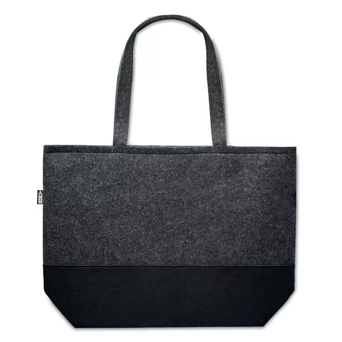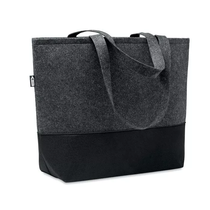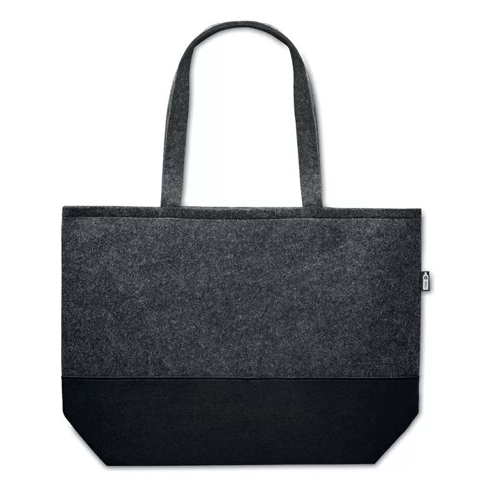 Сумка для покупок из переработанного фетра RPET с длинными ручками и разноцветным низом.