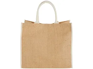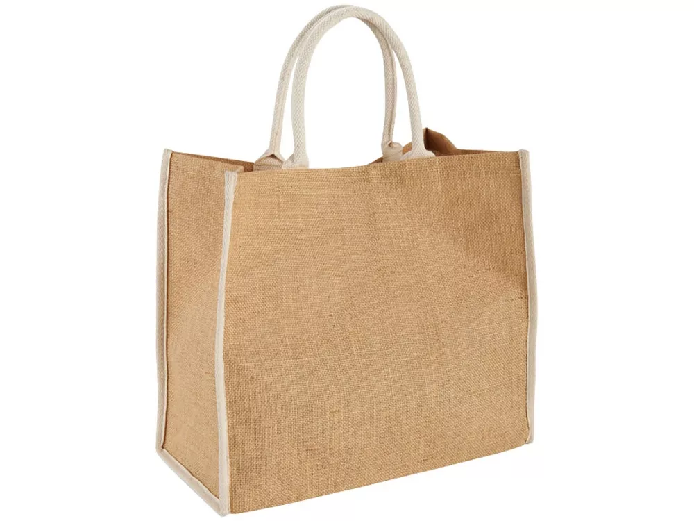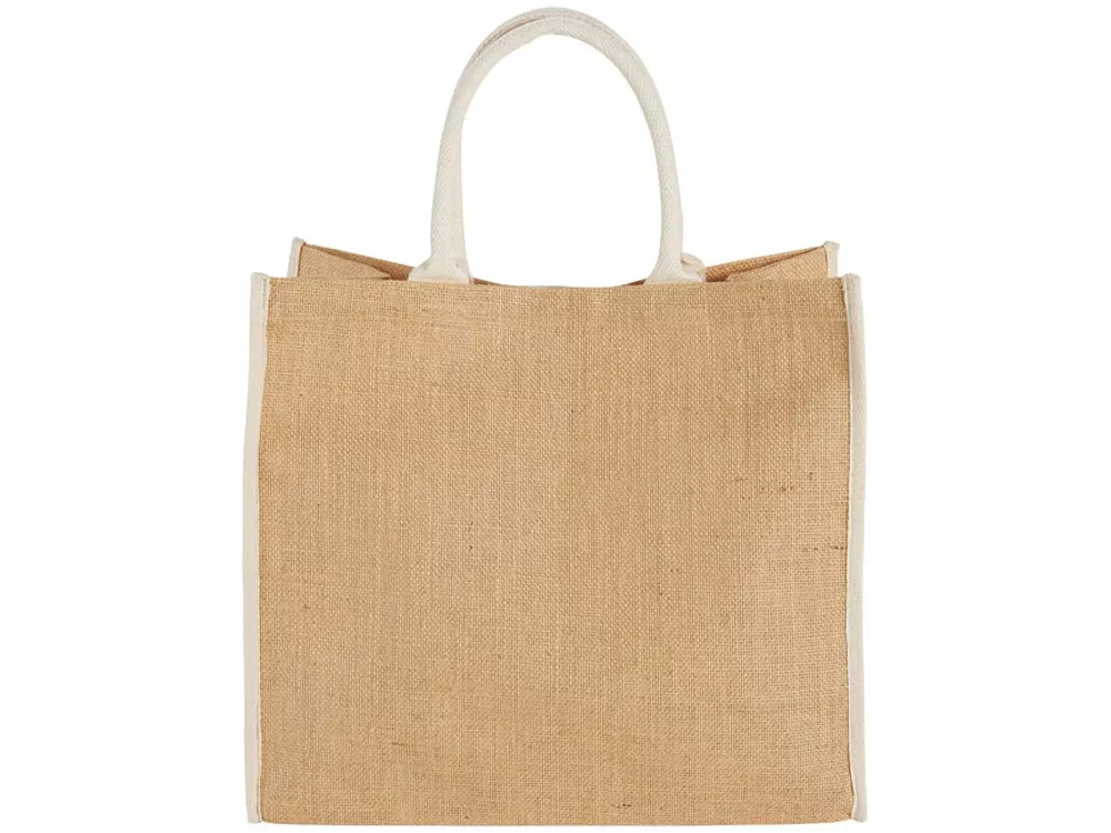 Сумка для покупок. Открытое основное отделение на липучке. Двойные ручки высотой 17 см. Джут.