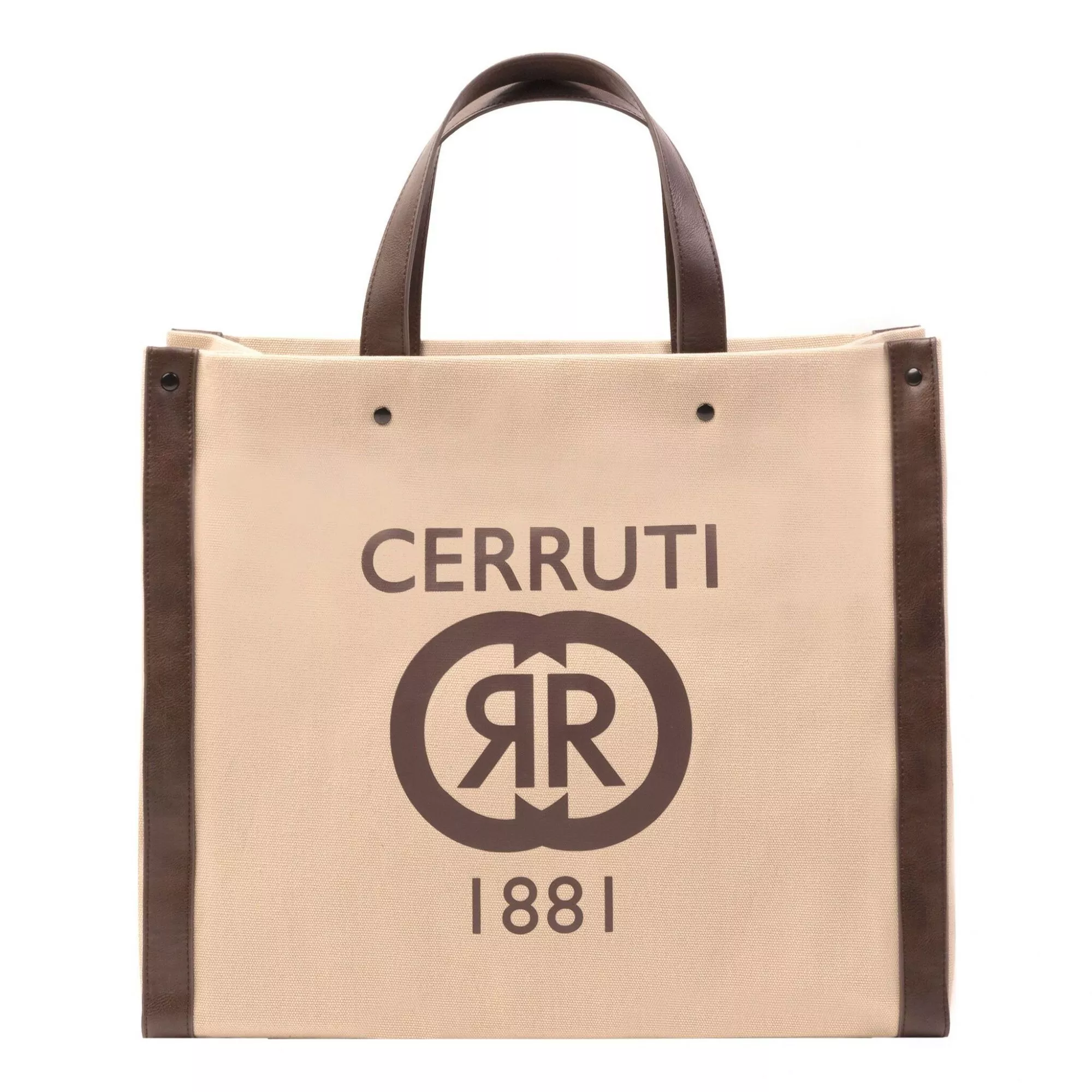 Линия "Hampstead" выполнена из холста и веганской кожи (ПУ), что является идеальным сочетанием для этой большой сумки-тоут, которая позволит вам носить с собой все необходимое, и которая настолько вместительна, что ее можно использовать в качестве ночной сумки. Эта бежево-коричневая версия определенно создает ощущение лета, с легким винтажным оттенком и имеет большой принт с новым логотипом CERRUTI 1881.