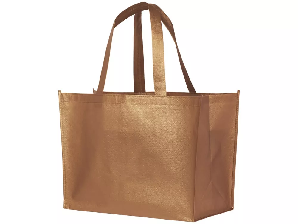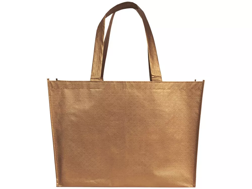 Ламинированная сумка-шоппер Alloy. Легкая, гибкая ламинированная, блестящая сумка-шоппер. Сделана из ламинированного нетканого полипропилена (80 г). Высота ручек 24 см.