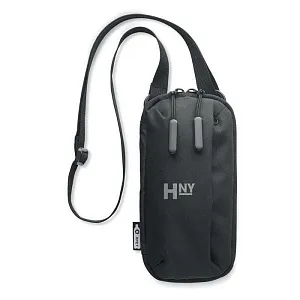 Универсальная сумка для смартфона из полиэстера 300D RPET с регулируемым ремнем. Передний и боковой карман на молнии. Основное отделение имеет несколько карманов.