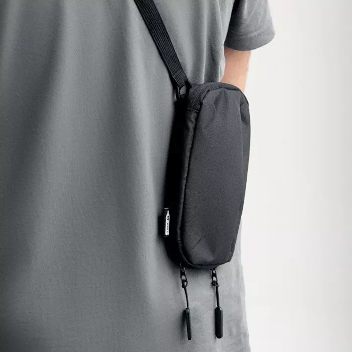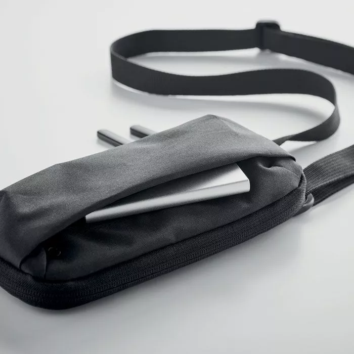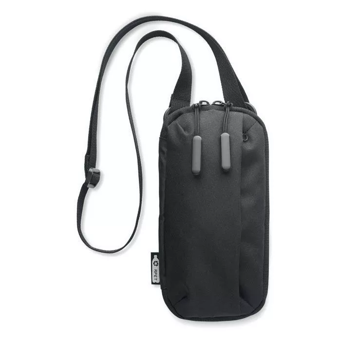 Универсальная сумка для смартфона из полиэстера 300D RPET с регулируемым ремнем. Передний и боковой карман на молнии. Основное отделение имеет несколько карманов.