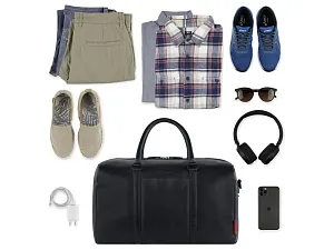 СУМКА ДОРОЖНАЯ CLARK Коллекция CLARK – идеальное сочетание элегантности и спортивного стиля. Все модели изготовлены из натуральной воловьей кожи. Лаконичная геометрия подчеркивает классический дизайн, в то же время акценты красного цвета и прорезиненные детали с логотипом Bugatti делают продукты серии современными и абсолютно необходимыми для мужчин, следящих за модными тенденциями. СВОЙСТВА Внутренняя организация: основное отделение на молнии с карманом на молнии и 2 открытыми карманами. Внешняя организация: передний карман на молнии, 2 ручки, съемный регулируемый плечевой ремень (до 150 см), пыльник в комплекте. Материал: воловья кожа / полиэстер Размер: 45 x 20 x 27,5 см Вес: 1,24 кг Объем: 24 л
