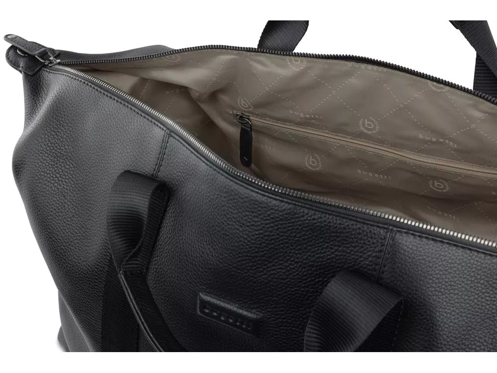 ДОРОЖНАЯ СУМКА ELSA Готовы к поездке в выходные? Мы раскрасим вашу ленту в соцсетях невероятной коллекцией ELSA. Коллекция ELSA предлагает широкий ассортимент аксессуаров и сумок разных форм и размеров, от элегантных кошельков и изящных наплечных сумочек для выхода в свет до вместительных шопперов и дорожных сумок для путешествий. Все модели серии изготовлены из высококачественной мягкой воловьей кожи и представлены в классическом черном, белом и бежевом цветах. Элегантное тиснение логотипа Bugatti придает очарование каждой модели. Коллекция выделяется продуманной функциональной организацией внутреннего пространства и защитой от радиочастотной идентификации RFID. Кошельки и ключницы оснащены специальным защитным слоем из фольги, который предотвращает незаконное сканирование вашей личной информации и препятствует списанию денежных средств с банковских карт. Какой бы аксессуар или сумку вы бы ни предпочли, будьте уверены, что с коллекцией ELSA вы точно окажетесь в центре внимания. СВОЙСТВА Функциональная организация: основное отделение на молнии с карманом на молнии, 2 открытых кармана, задний карман на молнии, 2 ручки, съемный регулируемый плечевой ремень (до 140 см). Материал: воловья кожа/полиэстер Размер: 47 х 22 х 24/30 см Вес: 1,2 кг