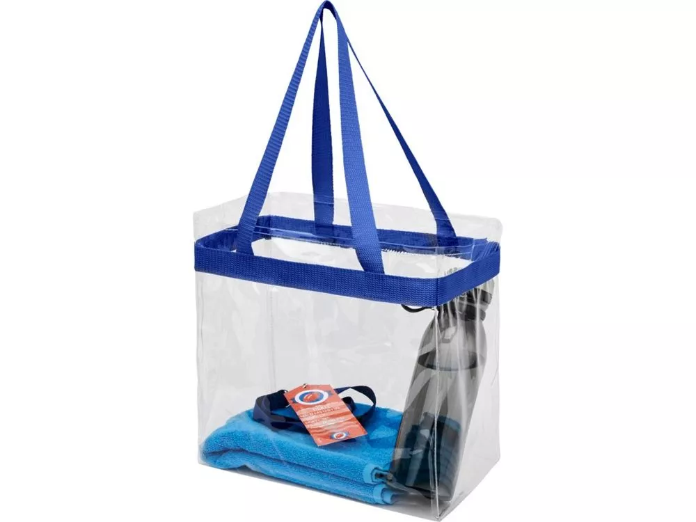 Эта прозрачная сумка отлично подходит для фанатов, которые предпочитают безопасно паковать свои принадлежности для стадиона и мероприятий. Она также подходит для работы и школы. Открытое основное отделение со спортивной сетчатой отделкой и двумя ручками. Высота ручек 24 см.