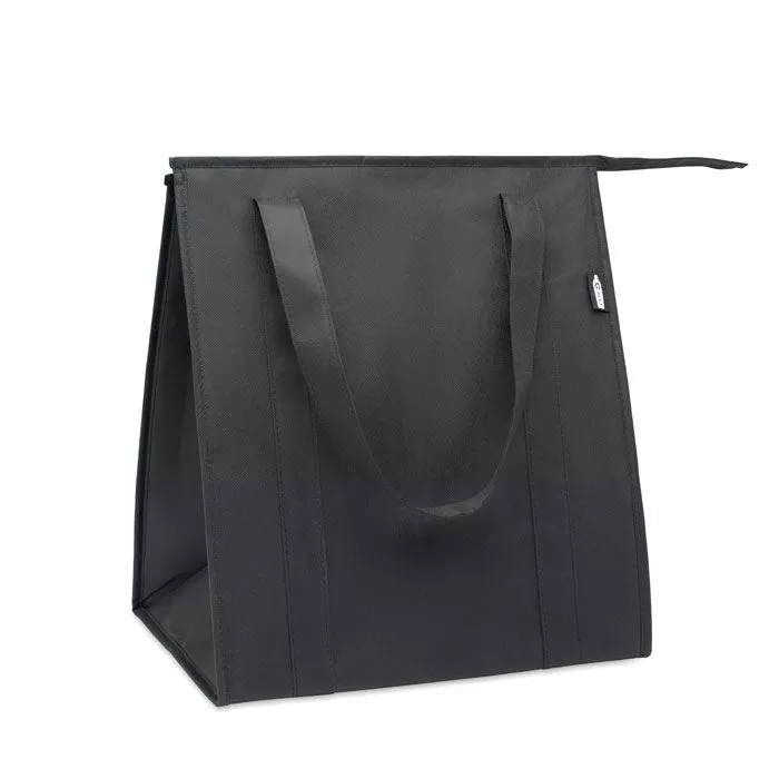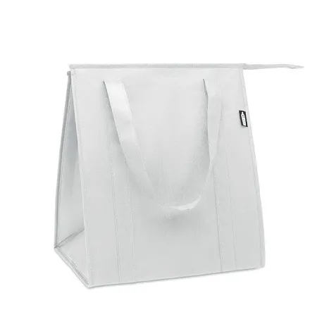 Сумка-холодильник из нетканого материала RPET 80 гр/м². Изоляционный материал: алюминиевая фольга. Вместимость 25 л. Основное отделение с застежкой на молнию и съемным усилением из картона.