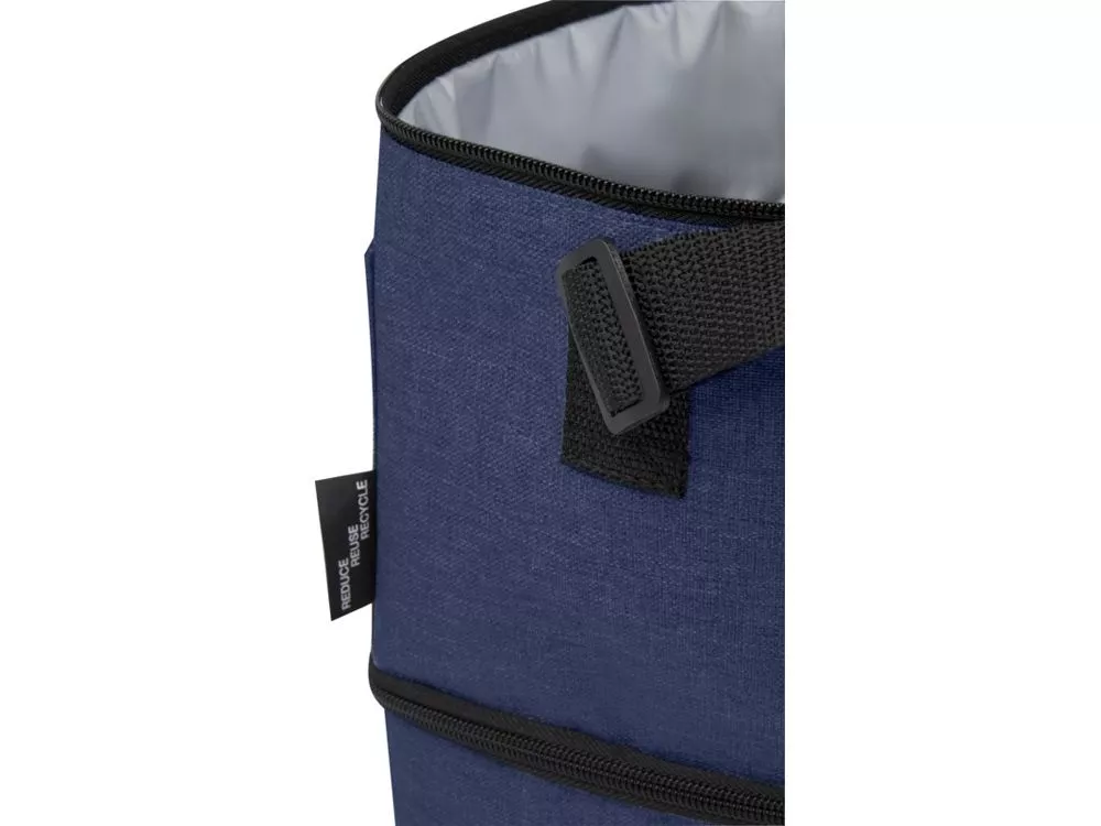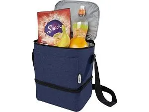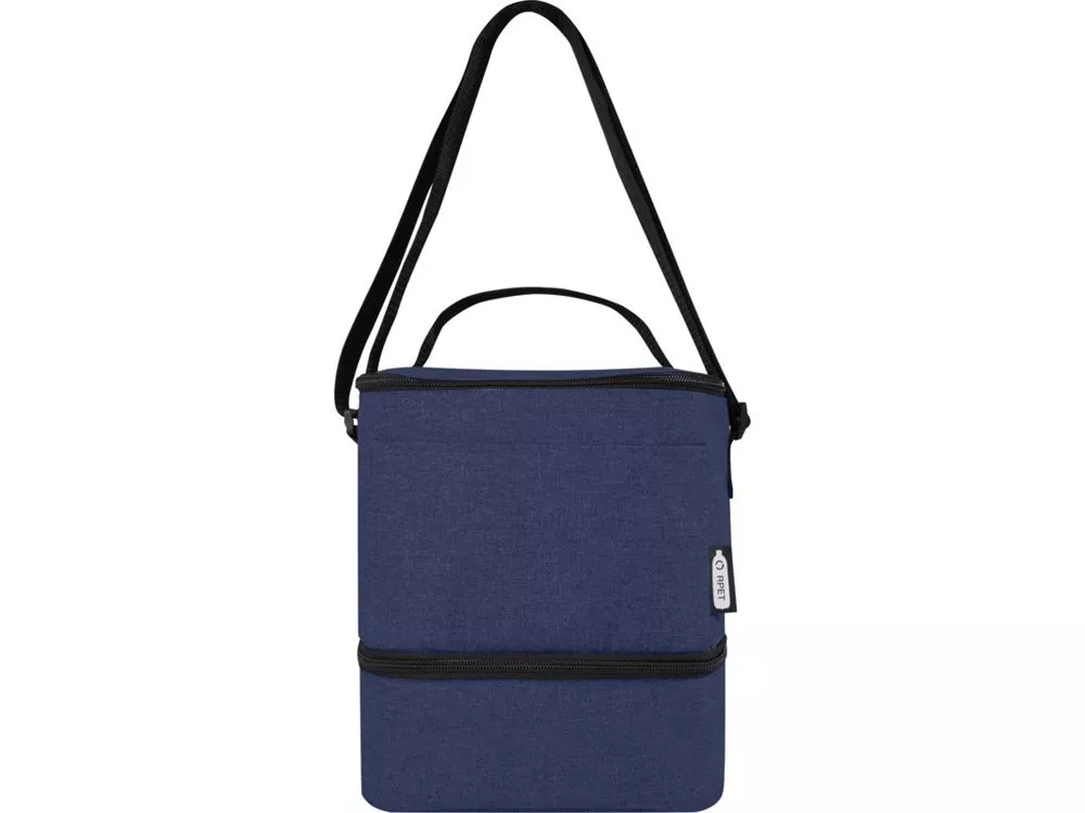 Сумка-холодильник Tundra выполнена из переработанного материала, в ней достаточно места для всех ваших продуктов, которые вы берете на обед. Имеет одно верхнее изолированное отделение на молнии и одно нижнее изолированное отделение на молнии. Нижнее отделение идеально подходит для бенто-бокса, а в переднем прорезном кармане удобно носить защитную маску и другие небольшие предметы. Подкладка и внешний слой сумки-холодильника PEVA изготовлены из переработанного РЕТ-пластика. 600DПереработанный Полиэстер.