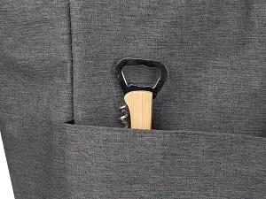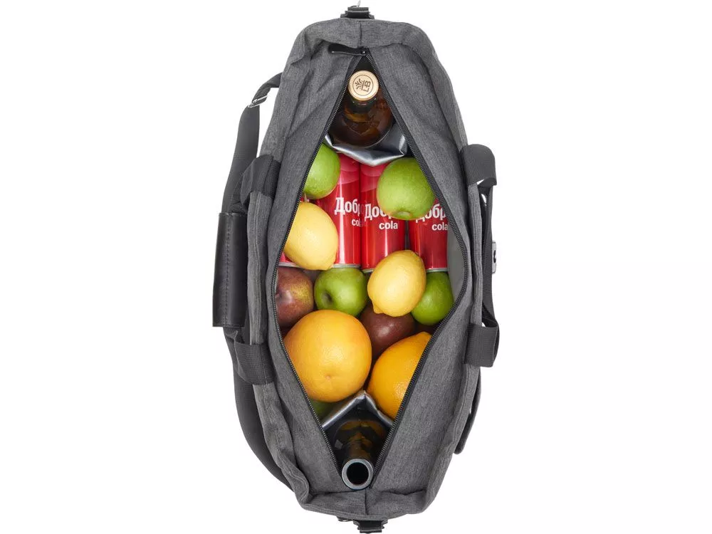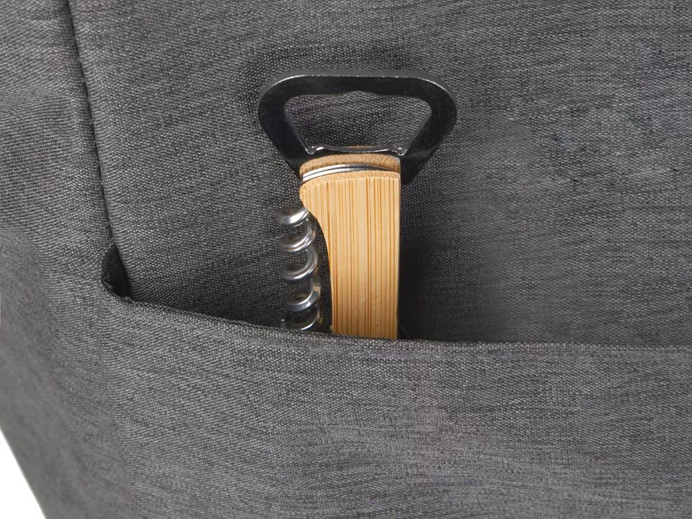 Большую вместительную сумку-холодильник удобно использоваться для транспортировки охлаждённых или подогретых продуктов и бутылок с разнообразными напитками. Внутри по бокам сумки расположены 2 изотермических кармана для высоких бутылок. Основное отделение на молнии. 2 ручки с фиксатором на липучке для удобства носить в руке. Большой наружный карман на кнопке. Съемная лямка на плечо регулируется по длине. Выгодный бонус - штопор с бамбуковой ручкой в комплекте.
