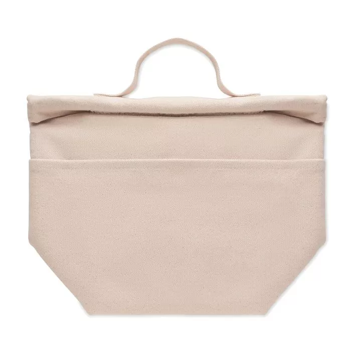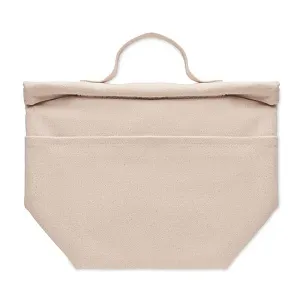 Изолированная сумка-холодильник для ланча из переработанного хлопка с застежкой на крючок и петлю. Изоляция: 3 мм пенополиэтилен с 12C PEVA.