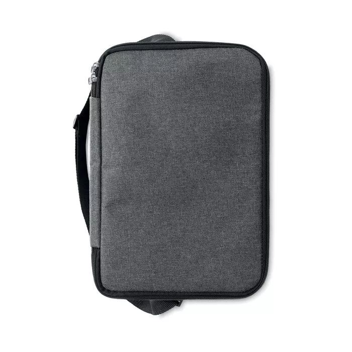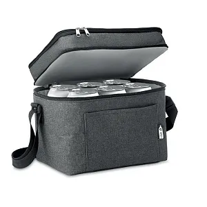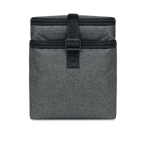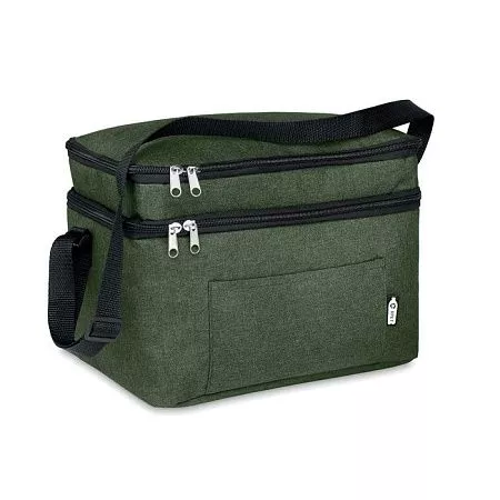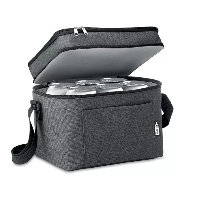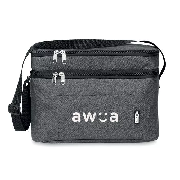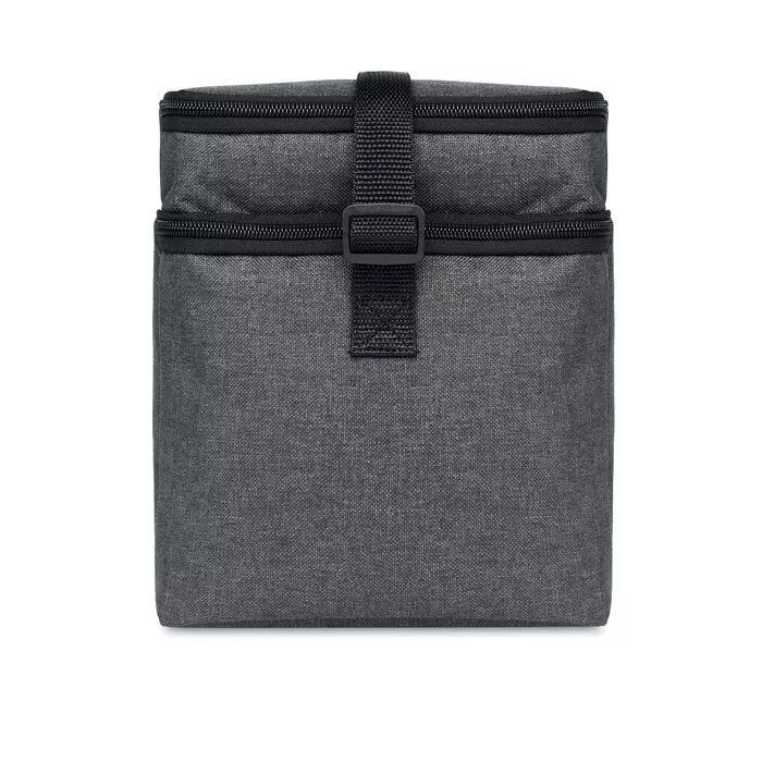 Двухцветная сумка холодильник из RPET 600D с 2 отделениями и подкладкой из PEVA. Регулируемый плечевой ремень и передний карман.