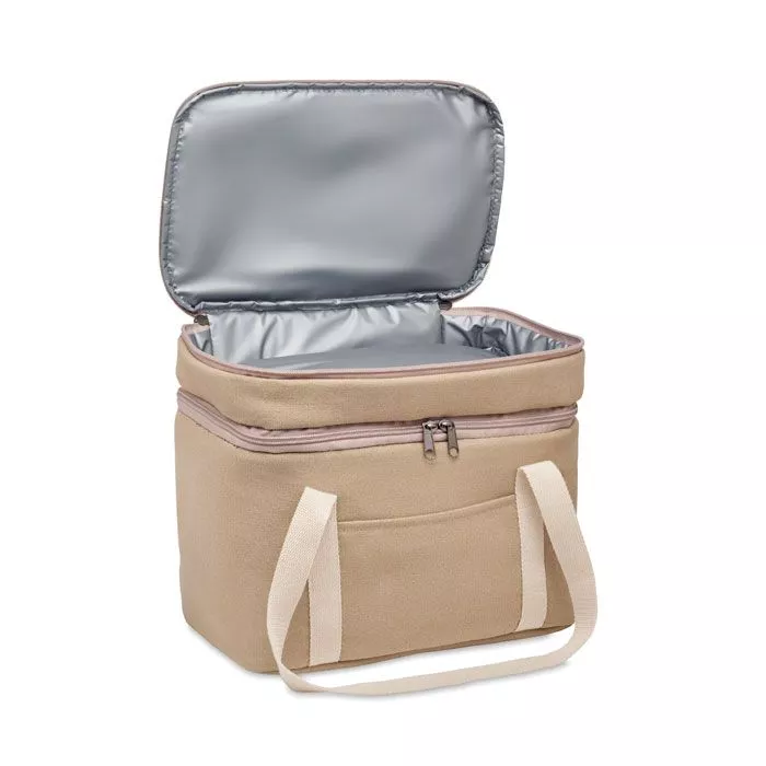 Сумка-холодильник с 2 отделениями из мокрой парусины с хлопковым ремешком. 320 гр/м². Изоляция: 15C PEVA с 6 мм пенополиэтиленом.