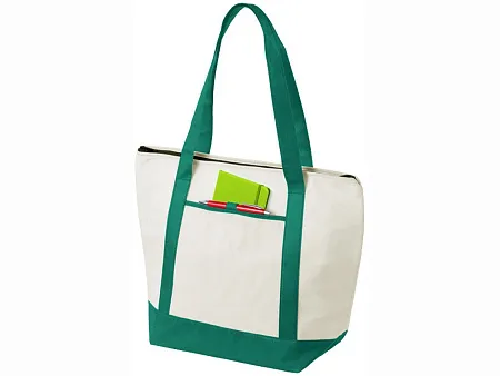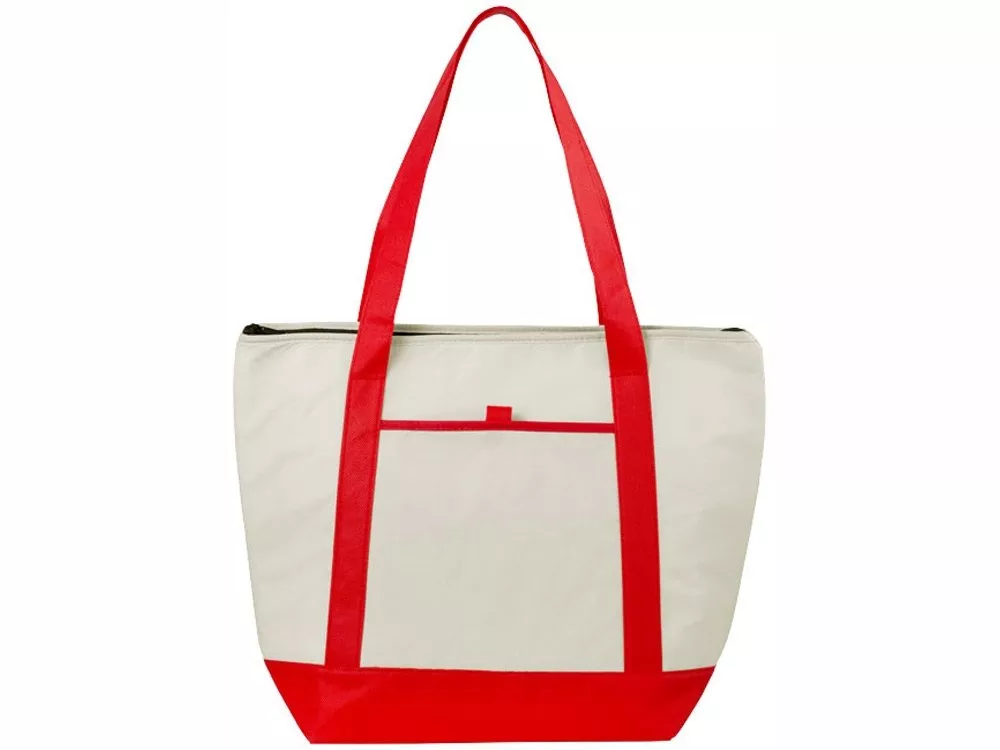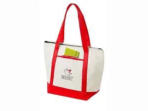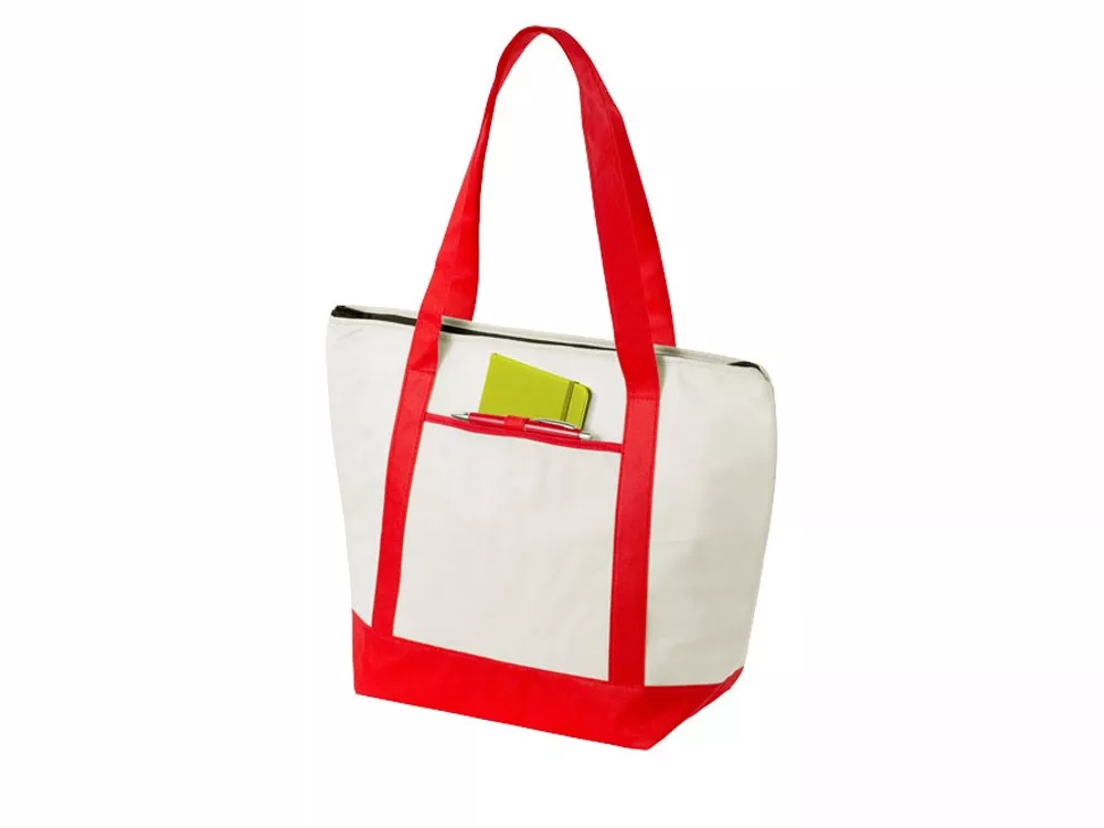 Нетканая сумка-холодильник Lighthouse. Основное отделение на молнии с двойными ручками. Высота ручек 23,5 см. Открытый передний карман с держателем для ручки. Аксессуары не включены. Нетканый полипропилен 80 г/м².