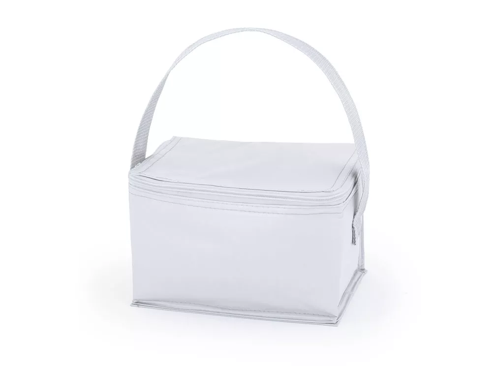 Сумка-холодильник с подкладкой из изотермического алюминия на 6 банок из ПВХ. Ручка для переноски и застежка-молния.