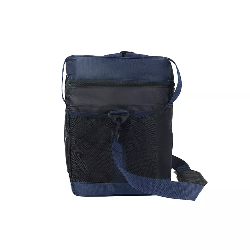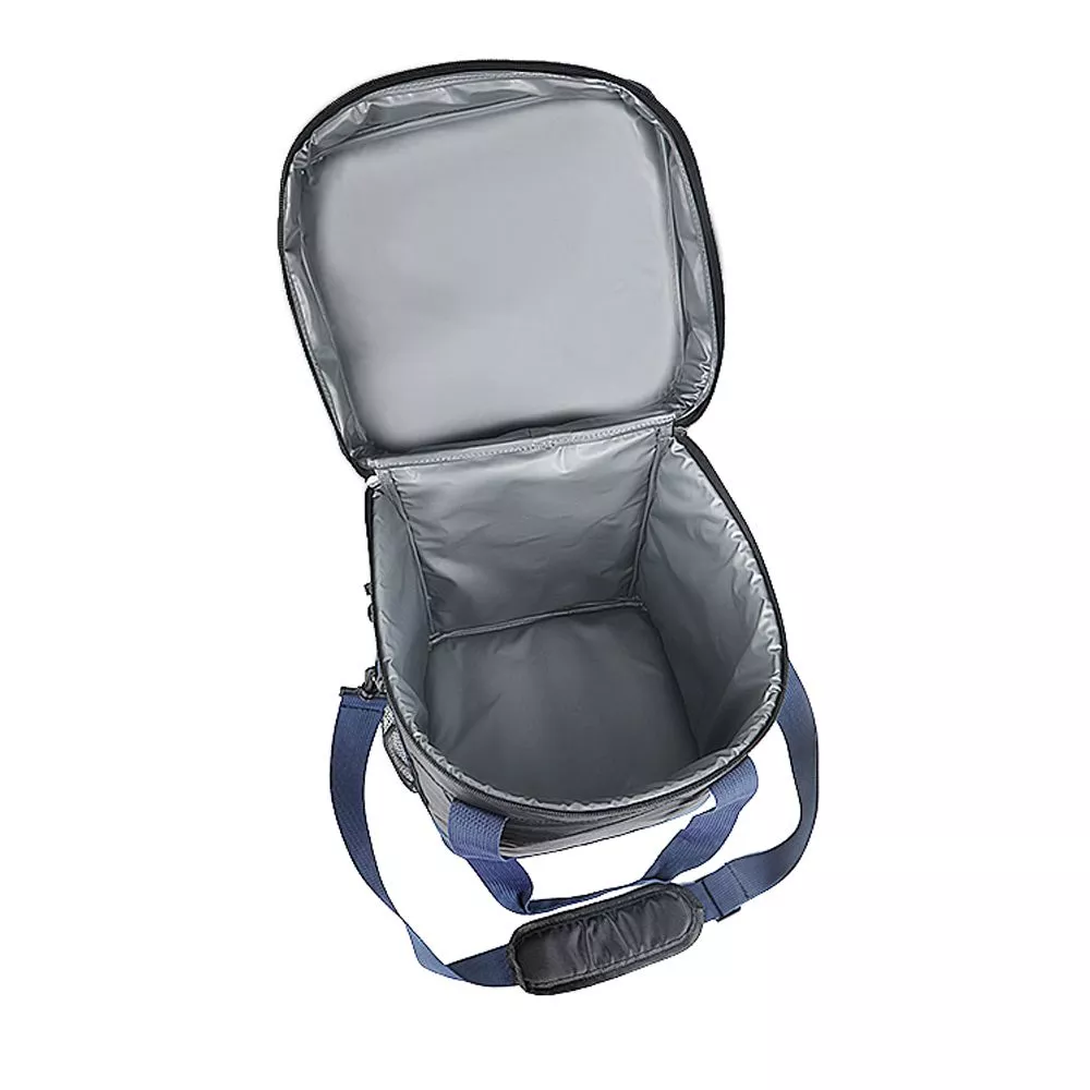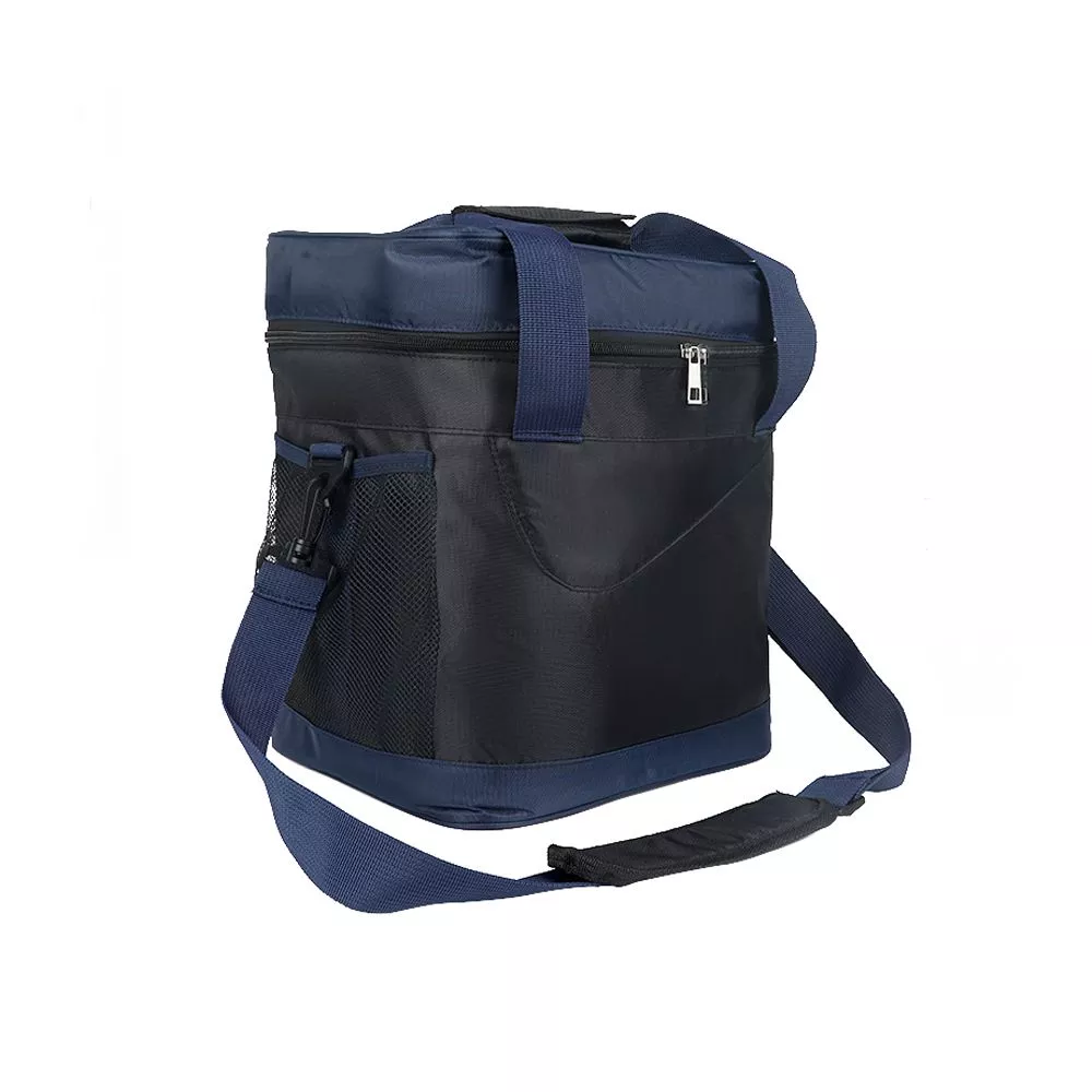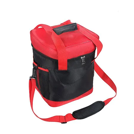 Сумка-холодильник Виннипег для сохранения оптимального температурного режима и надлежащего качества продуктов и напитков знойным летом и прохладной зимой. Для удобства переноски сумки имеются: регулируемая по длине ручка через плечо и две дополнительные ручки. Сумка снабжена дополнительными карманами-сетками. Вместимость сумки – 15 л. Наружная часть изготовлена из прочного полиэстера, внутренняя поверхность изготовлена из водонепроницаемого материала PEVA.
