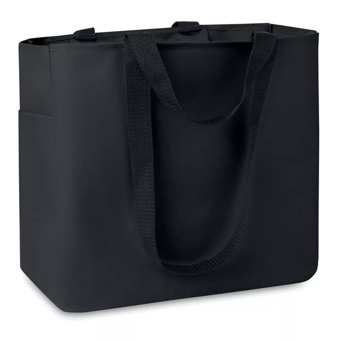 Хозяйственная сумка из полиэстера с двумя видами ручек: длинными и короткими. Имеется боковой карман и внутренний карман на молнии.