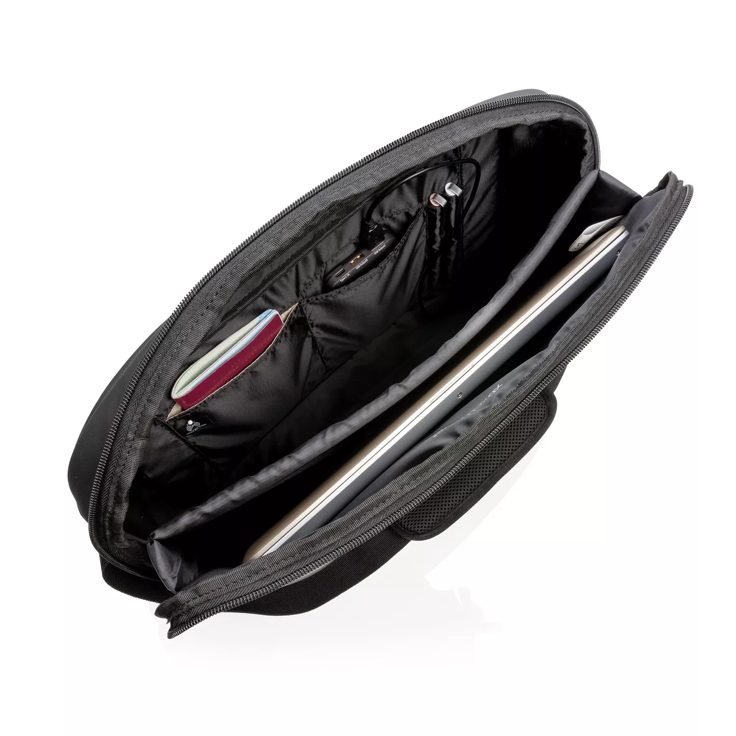 В сумке предусмотрено мягкое и надежное отделение для ноутбука 15,6 дюймов, а также карманы для удобного хранения гаджетов и аксессуаров к ним. Сумка изготовлена из материалов, не содержащих ПВХ.