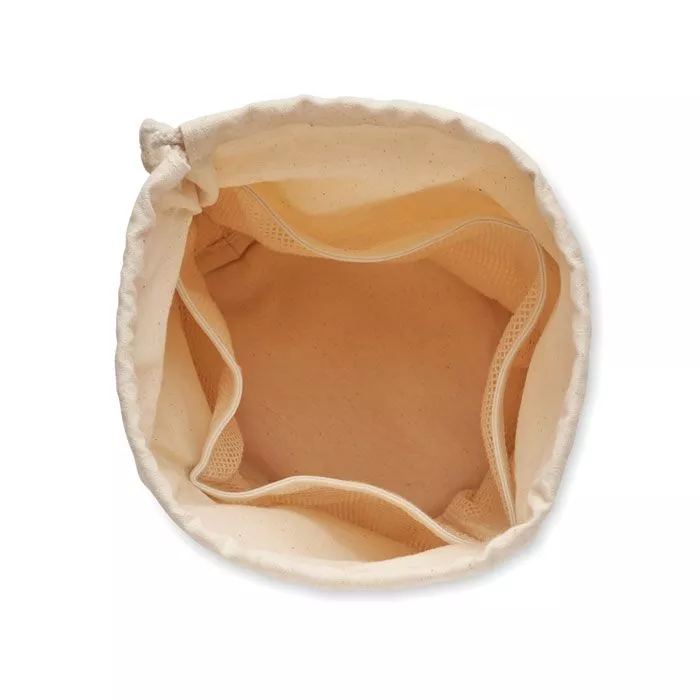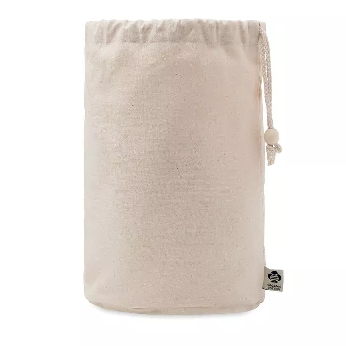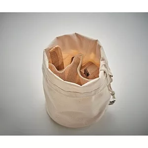 Сумка-мешок для аксессуаров среднего размера из органического хлопка. 220 гр/м². Имеет внутренние сетчатые отделения и деревянную застежку.