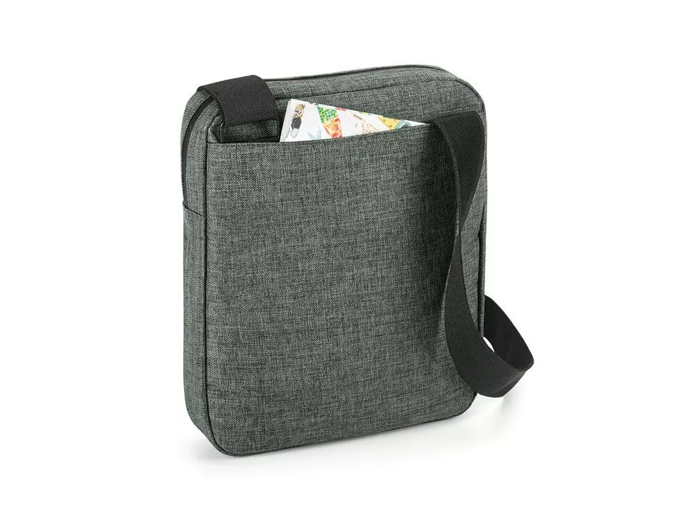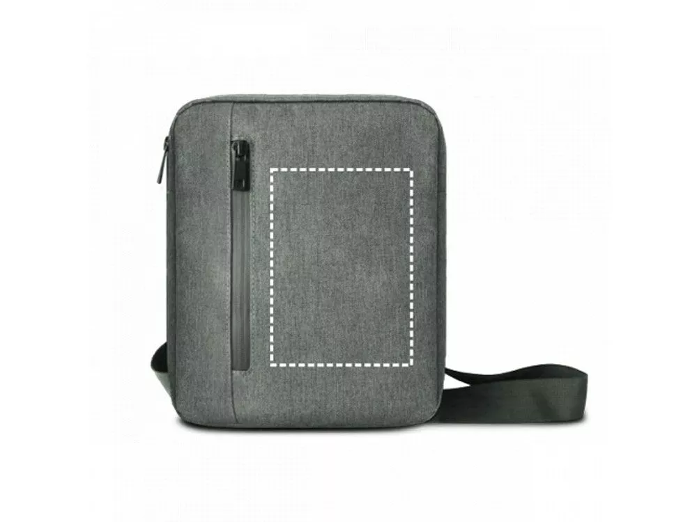 SHADES CROSS. Сумка на плечо из 600D, Серый. Сумка на плечо из полиэстера 600D высокой плотности, основное отделение с подкладкой и мягкой перегородкой для планшета с диагональю до 9'7'', внутренние карманы. Задняя часть с набивкой. 1 передний карман на молнии, 1 задний карман. Регулируемый плечевой ремень. Вид нанесения, рекомендуемый поставщиком: трансфер