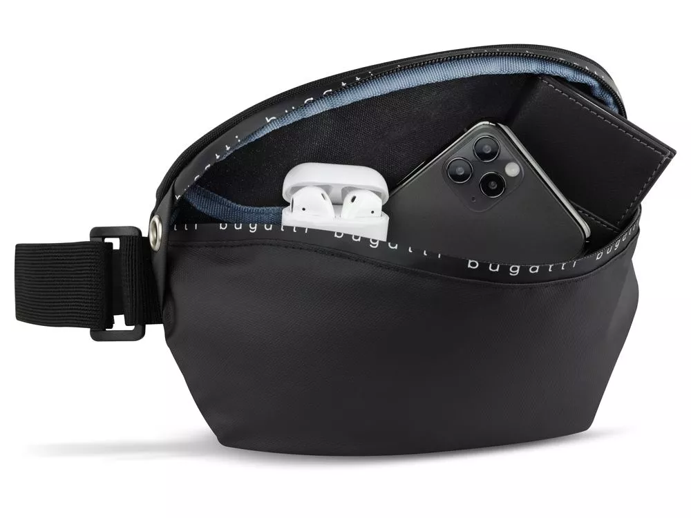 СУМКА НА ПОЯС BLANC DELIGHT Синергия дизайна и функциональности. Представляем нашу коллекцию универсальных, чрезвычайно стильных и суперлегких сумок и рюкзаков BLANC DELIGHT в облегченной версии. В качестве основного материала используется 100% переработанный нейлон плотностью 600D и облегченный тарпаулин с водоотталкивающими свойствами. Скрытые молнии с логотипом Bugatti не только защищают от проникновения влаги, но и дополняют стильный дизайн коллекции. С сумками BLANC DELIGHT будьте готовы быть в центре внимания! СВОЙСТВА Функциональная организация: основное отделение на молнии с сетчатым карманом, регулируемый поясной ремень (до 120 см). Материал: нейлон RPET600D/облегченный тарпаулин/полиэстер Размер: 24 х 11 х 12,5 см Вес: 0,11 кг Объем: 2 л