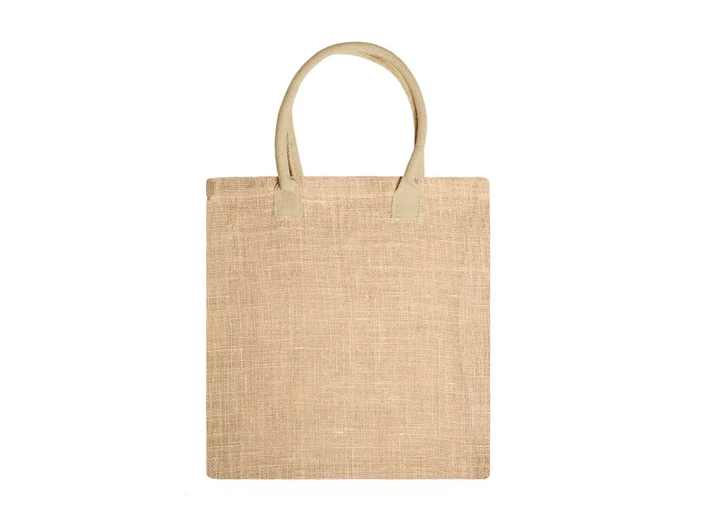 Сумка из натурального джута с усиленными хлопковыми цветными ручками.