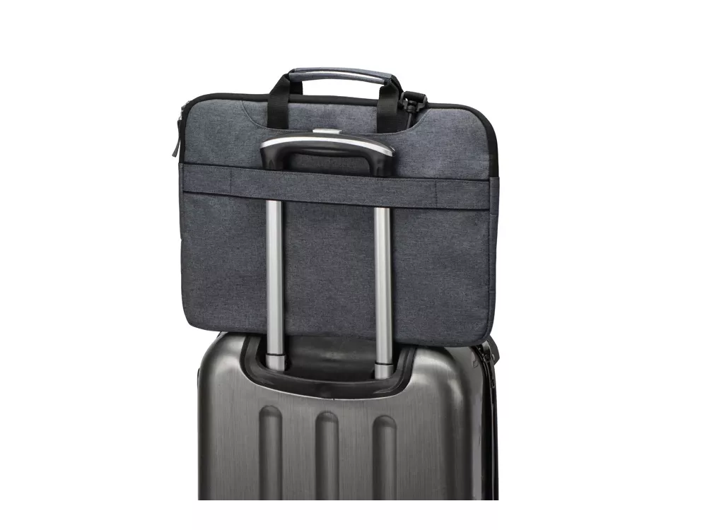 Элегантная сумка для ноутбука 15.6’’. Мягкая прочная велюровая подкладка и утолщенные стенки создают надежную защиту ноутбука от случайных ударов и царапин. Возможность убрать ручки в карманы превращает сумку в чехол для ноутбука или папку для документов. · 2 вместительных внешних кармана под ручками, · 1 карман на молнии на лицевой стороне с органайзером внутри, · отстегивающийся регулируемый ремень на плечо, · ремень для фиксации на чемодане. Термотрансфер (1 цвет (цветные изделия)) на данный товар осуществляется бесплатно. Оплачивается только настройка оборудования в размере 9200 рублей на весь тираж.