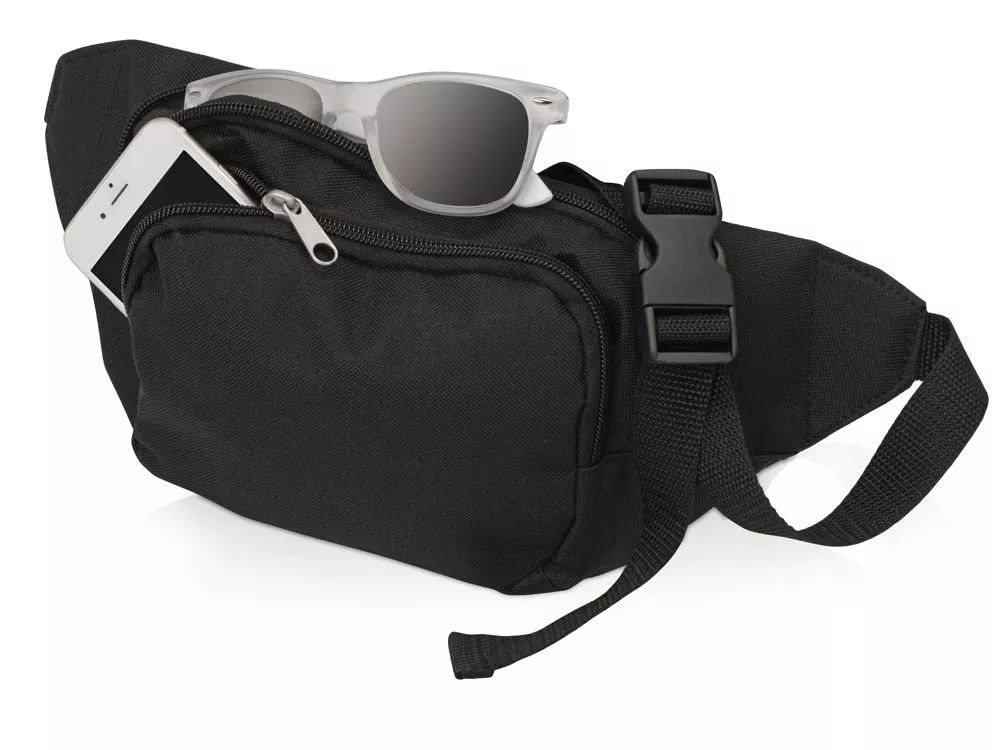 Сумка на пояс будет отличным подарком для тех, кто не сидит на месте. Прекрасно послужит в путешествиях, но подходит и для повседневного использования. На внешний карман можно сделать нанесение оригинального изображения по вашему эскизу. Сумка имеет два кармана на молнии. Пояс тканевый, регулируется по ширине пояса (max 140 см) . Фиксаторы пластиковые. Термотрансфер (1 цвет (цветные изделия)) на данный товар осуществляется бесплатно. Оплачивается только настройка оборудования в размере 9200 рублей на весь тираж.