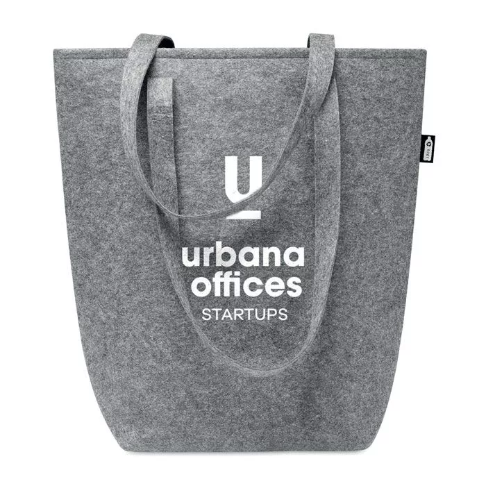 Сумка для покупок фетровая из RPET с длинными ручками и вставками на дне.