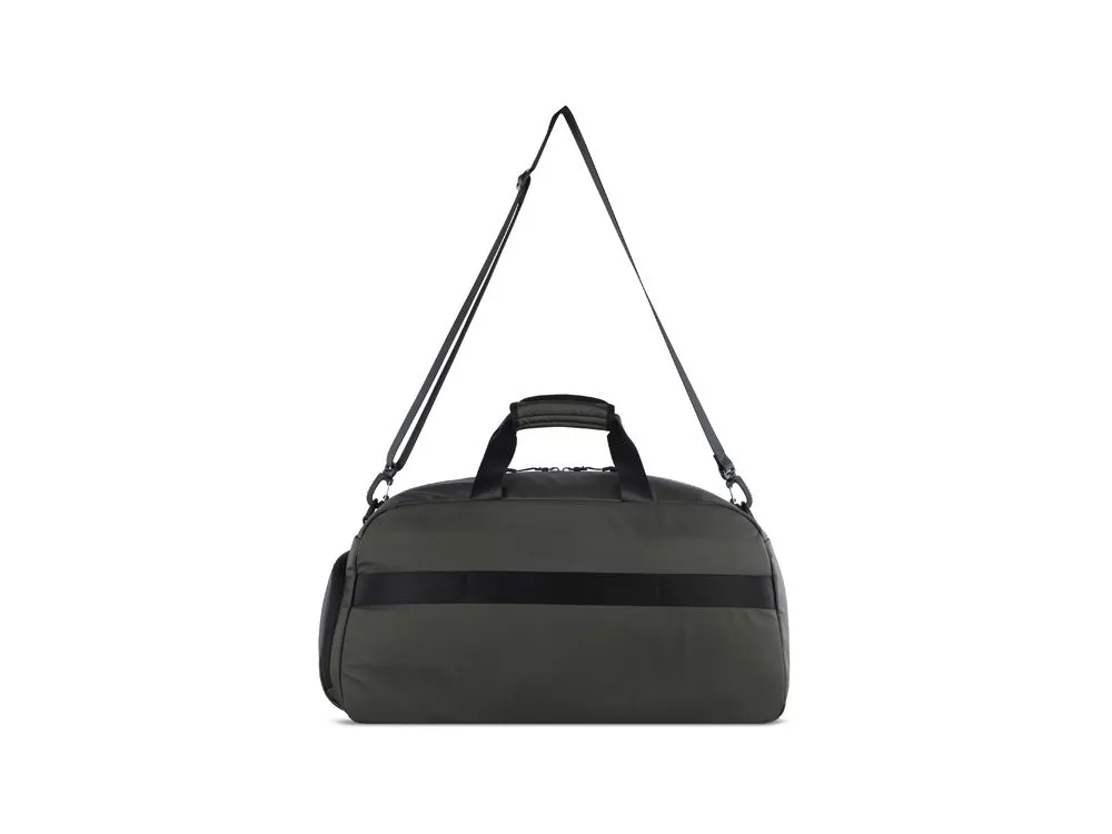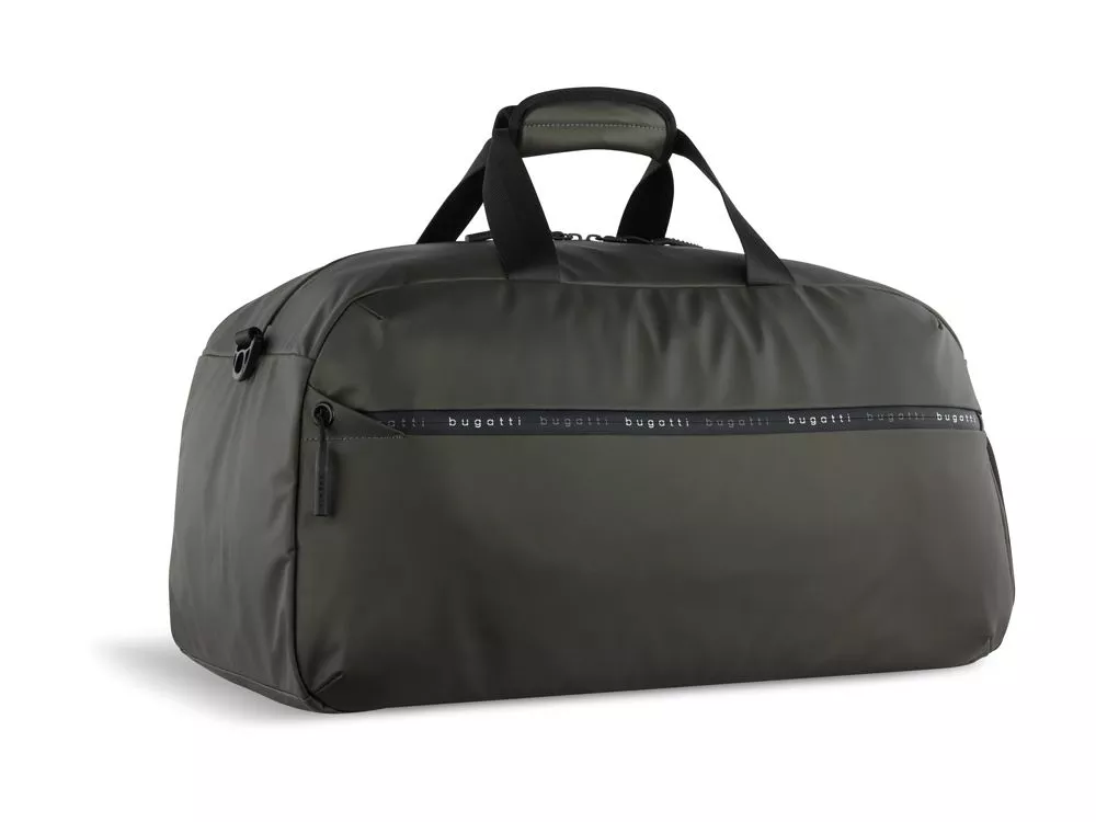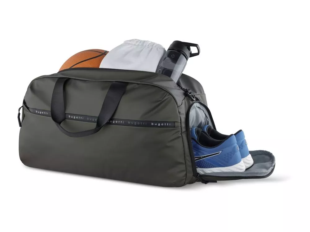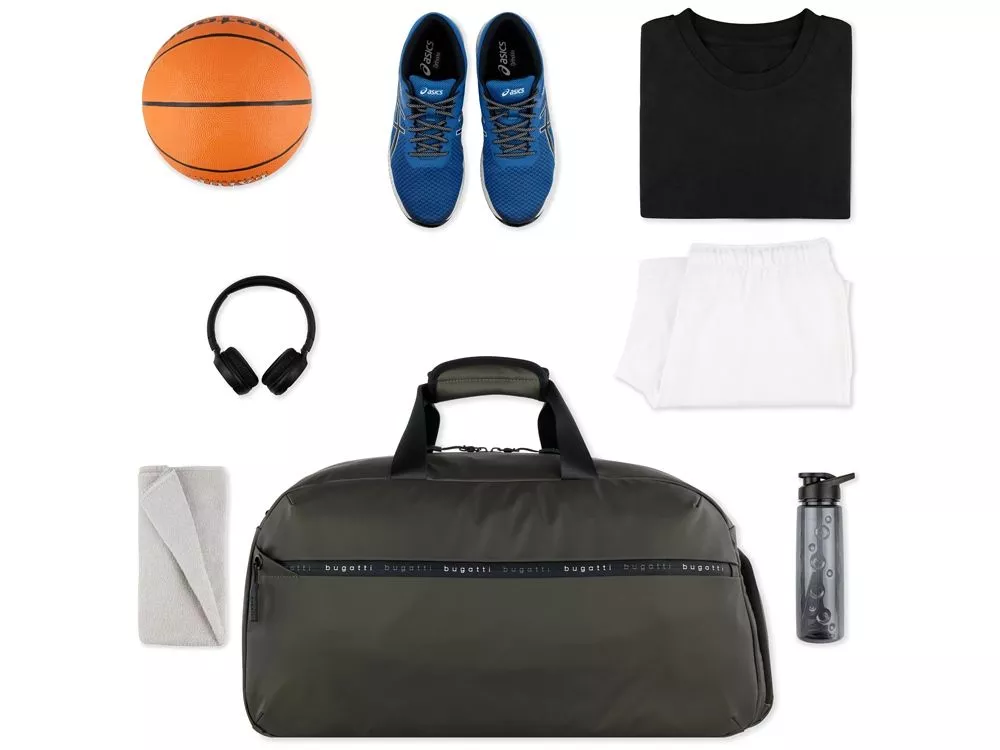 СПОРТИВНАЯ СУМКА BLANC Рады представить вам нашу новую серию универсальных и чрезвычайно стильных сумок и рюкзаков Blanc. В этой линейке наши дизайнеры добились идеального сочетания дизайна, функциональности и пригодности для повседневного использования. В качестве основного материала используется тарпаулин - очень лёгкая ткань с водоотталкивающими свойствами. Скрытые молнии с логотипом Bugatti не только защищают от проникновения влаги, но и дополняют стильный дизайн коллекции. С сумками Blanc будьте готовы быть в центре внимания! СВОЙСТВА Внутренняя организация: основное отделение на молнии с 2 открытыми карманами и карманом на молнии Внешняя организация: передний карман на молнии, ремень для соединения с телескопической ручкой чемодана, боковой карман на молнии для обуви, ручки высотой 14 см, съёмный регулируемый плечевой ремень (до 130 см) Размер: 52 x 26 x 27,5 см Вес: 0,65 кг Материал: тарпаулин / полиэстер