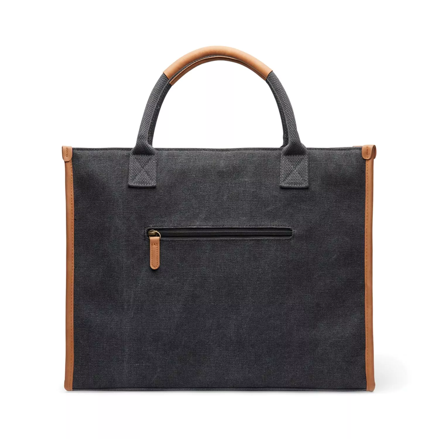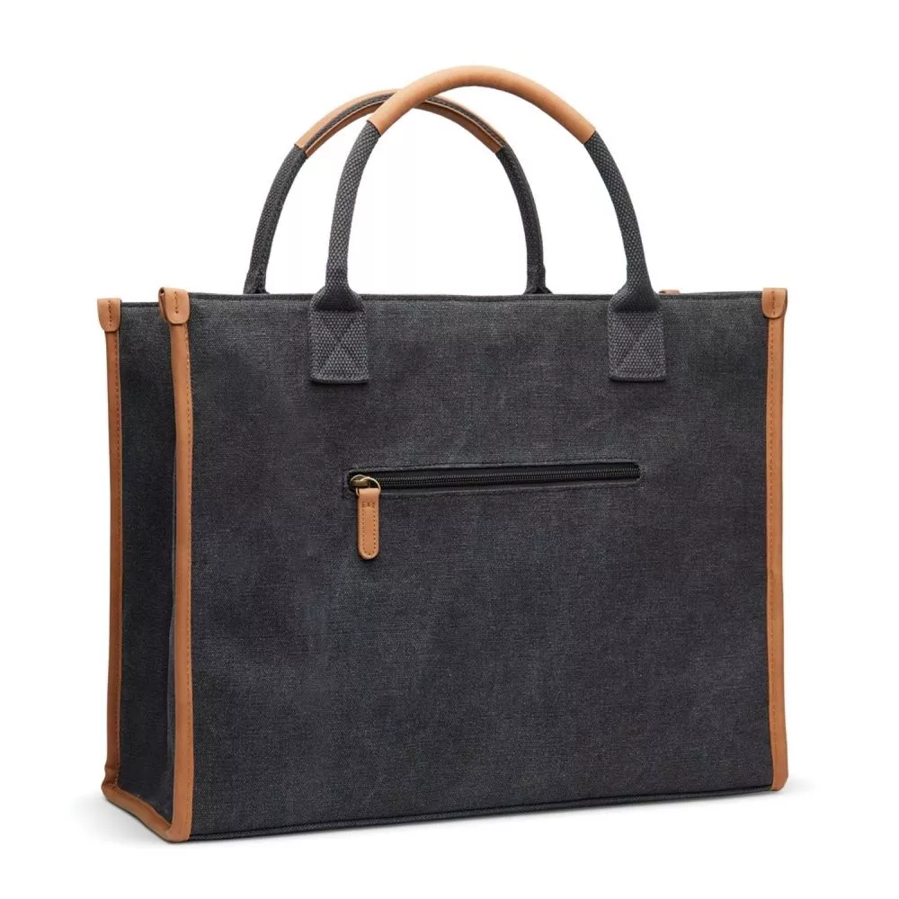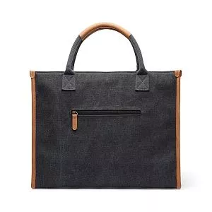 Деловая сумка-тоут отлично подойдет для рабочих будней или поездок. Стильная и вместительная, она отличается контрастной отделкой — стильным акцентом, привлекающим внимание. В сумке есть отделение с мягкой подкладкой — для ноутбука или планшета диаметром до 13’’. Основное отделение просторное, в него поместятся документы, зарядные устройства, кошелек и другие необходимые вещи. Снаружи задней стенки есть небольшой кармашек на молнии для ценных мелочей. У сумки короткие ручки с имитирующей кожу отделкой. Сумка изготовлена из переработанного канваса: на 70% он состоит из переработанного хлопка, а на 30% — из переработанного полиэстера. Все переработанные материалы имеют сертификат RCS, который гарантирует полный контроль цепочки поставок переработанных материалов.