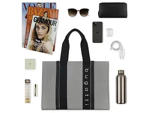 СУМКА-ТОУТ AMBRA Встречайте весенне-летний сезон с модной коллекцией женских сумок AMBRA. Сумки-тоуты и шопперы, входящие в линейку, изготовлены из первоклассной плотной ткани канвас в сером и бежевом цветах. Логотип bugatti, контрастные ручки и детали из полиуретана идеально дополняют дизайн, подчеркивают выразительность и индивидуальность каждой модели. Сумки из коллекции AMBRA станут идеальным дополнением вашего образа. Позвольте себе быть очаровательными! Внутренняя организация: основное отделение с открытым карманом Внешняя организация: 2 ручки высотой 22,5 см Материал: канвас (хлопок) / полиэстер / полиуретан Размер: 45 x 14 x 32 см Вес: 0,8 кг