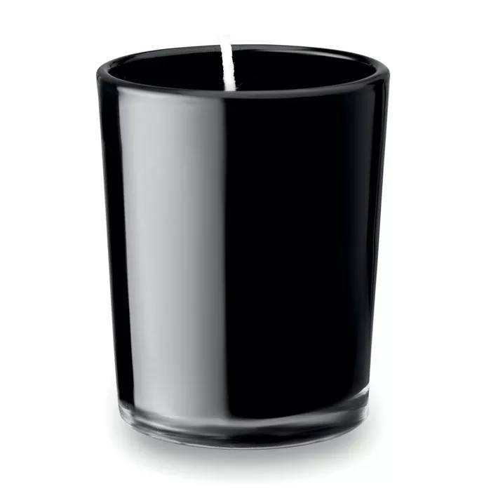 Ароматизированная свеча в стеклянном подсвечнике.