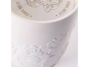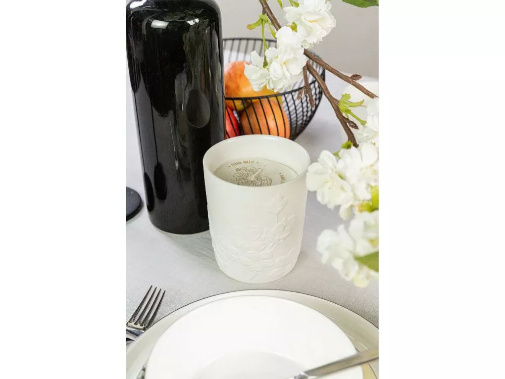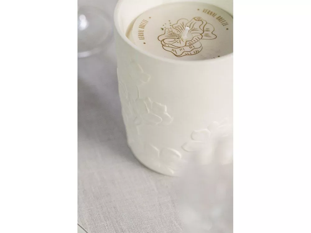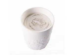 Ароматическая свеча с цветочным ароматом в фарфоровом кашпо от Valerie Concept. Кашпо выполнено из высокотемпературного прочного фарфора, украшено объёмным цветочным барельефом. Свеча из натурального соевого воска с хлопковым фитилем, подарит вам долгие часы наслаждения и умиротворения, благодаря нежному аромату с нотками чарующих цветов и хлопка. Свеча упакована в презентабельную подарочную коробку с логотипом, это универсальный, готовый подарок для ценителей уюта, комфорта, красоты и идеальный способ побаловать себя. Детали: Емкость может использоваться вторично после того, как свеча прогорит, как кашпо, конфетчицу, контейнер для хранения и т.д. Время горения: до 100 часов