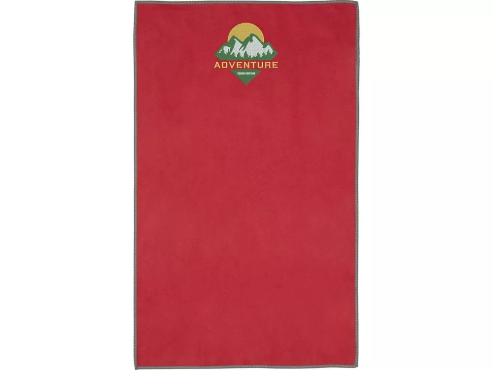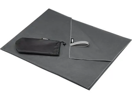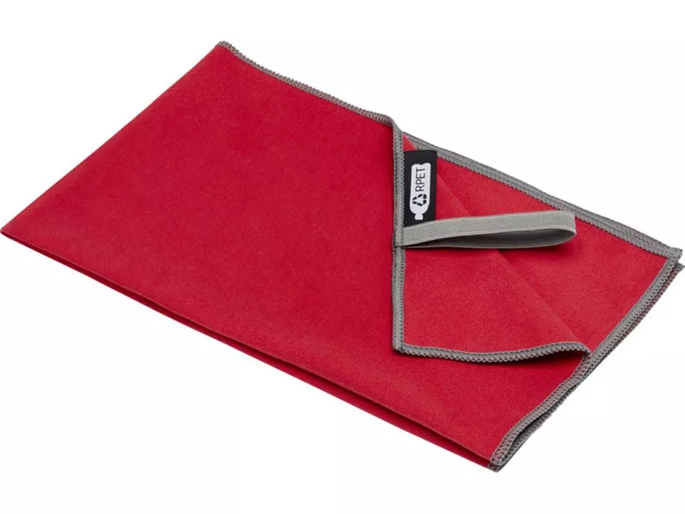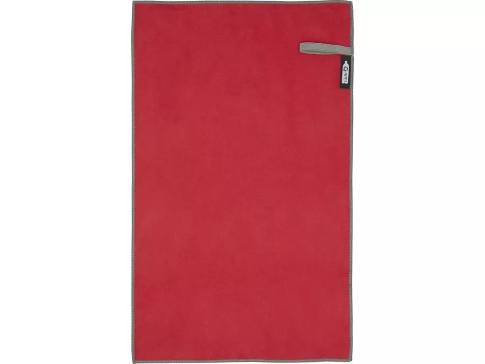 Спортивное полотенце Pieter очень хорошо впитывает влагу, легкое, быстро сохнет, а ткань прочная и очень мягкая. Когда полотенце сложено и закреплено резинкой, оно уменьшается до небольшого размера, поэтому его удобно брать с собой в тренажерный зал, бассейн, на пешую прогулку или в поход. Полотенце размером 50 х 30 см изготовлено из 90 % переработанного полиэстера GRS и 10 % нейлона. Его можно стирать в стиральной машине при температуре 40 °C. В комплект поставки входит мешок для хранения (15,5 x 10 см), изготовленный из переработанного ПЭТ-пластика, обеспечивающий большую площадь для печати логотипа. 10% Нейлон, 90% GRS certified recycled polyester, 200 g/m2.