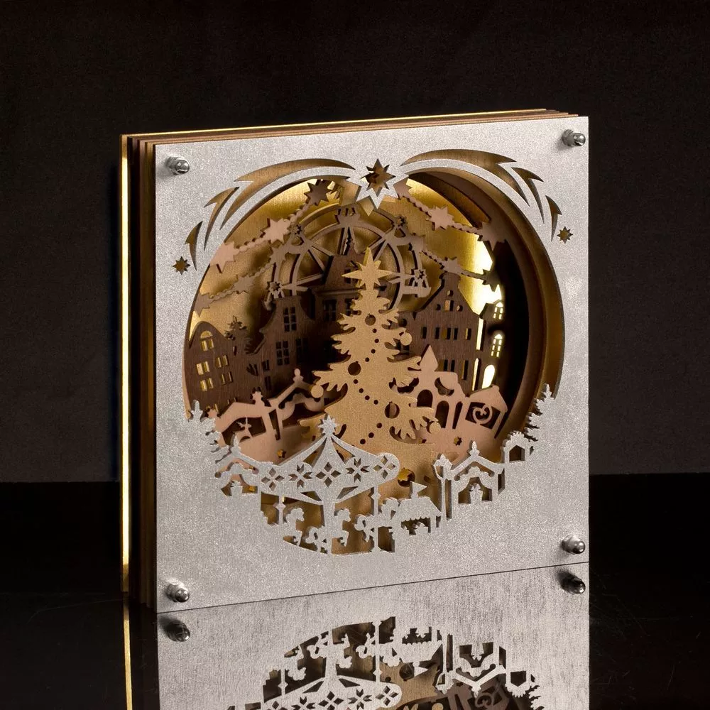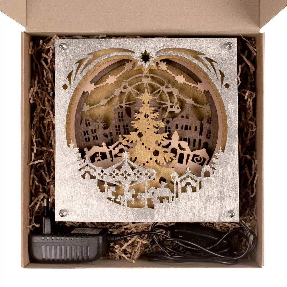 Ночник Merry Christmas с объемными резными изображениями создаст по-настоящему праздничное настроение и погрузит в сказочную атмосферу. В его многослойных очертаниях угадывается такой знакомый и родной сюжет рождественской ярмарки — участником может стать любой фантазер!