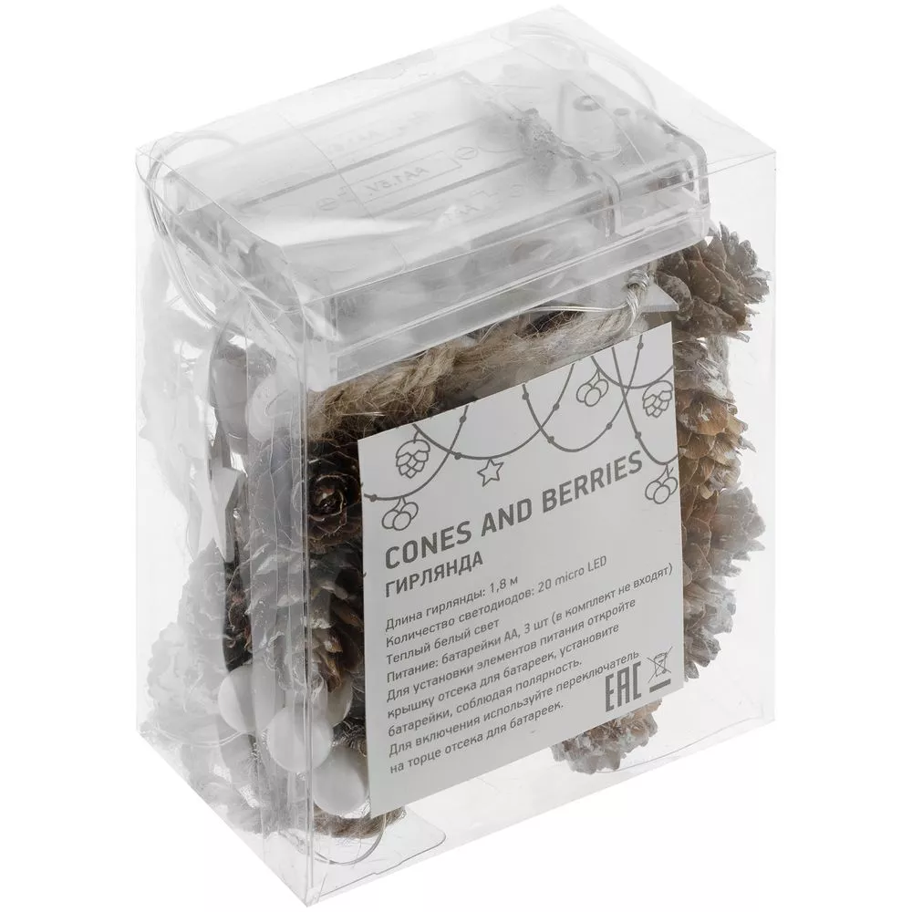 Одни из главных компонентов зимы и зимних праздников в стильном и милом оформлении гирлянды Cones and Berries — тот случай, когда детали решают все. Гирлянда актуальна и как самостоятельный вариант декора, и в качестве традиционного украшения елки.