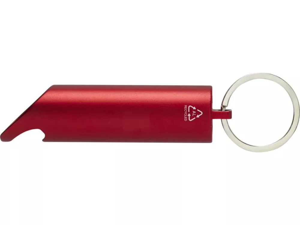 Яркая светодиодная подсветка с открывалкой для бутылок, кнопкой включения/выключения питания и железным брелоком для ключей. Она изготовлена из легкого и прочного на 63 % переработанного алюминия, сертифицированного по стандарту RCS. Стандарт утилизации вторичного сырья (RCS) проверяет переработанное содержимое продукта на протяжении всей цепочки поставок. Доступна в различных ярких цветах с металлической отделкой, благодаря которой напечатанный логотип будет красиво выделяться. В комплекте три батарейки LR44. Recycled Aluminium.