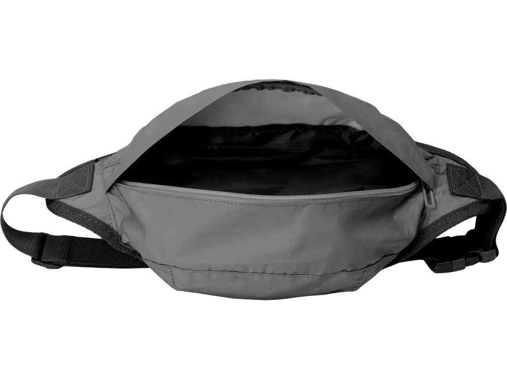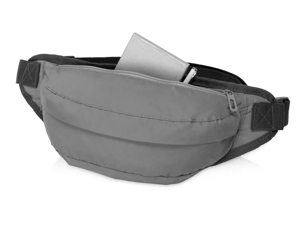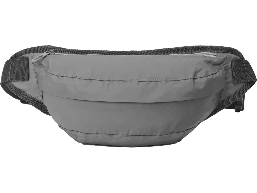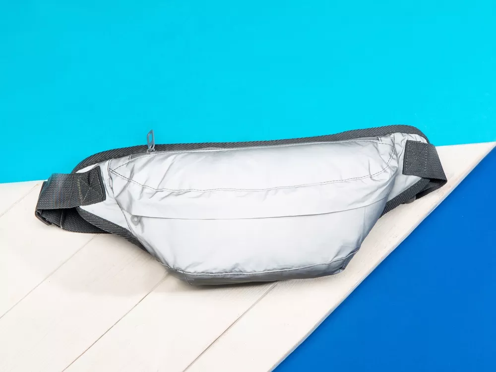 Вместительная поясная сумка увеличенного размера из светоотражающей ткани обеспечит дополнительную безопасность в темное время суток. Внутренний карман на молнии предназначен для хранения ценных вещей. Задняя часть сумки, прилегающая к телу, снабжена дышащей сеткой. Ремень 88 см регулируется по длине и позволяет носить сумку на талии и на груди. Термотрансфер (1 цвет (цветные изделия)) на данный товар осуществляется бесплатно. Оплачивается только настройка оборудования в размере 9200 рублей на весь тираж.