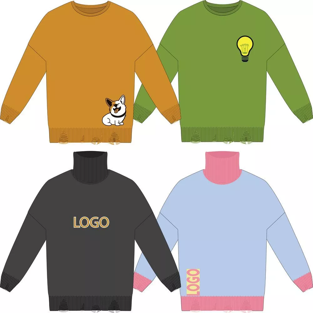 Свитер унисекс с вывязанным логотипом и индивидуальным рисунком в фирменной цветовой гамме.